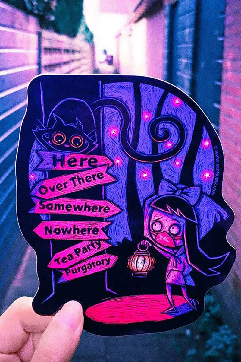 Fall down the rabbit hole with this wicked, whimsy sticker pack! Creep out your laptop, desk, notebook, whatevers with the 10 included stickers—emo AF and inspired by Alice in Wonderland! Check out the pics to see the epic stickers you’ll get. Each sticker is haunted with a glossy coating to protect against sun damage and water. Hell yeah!Â