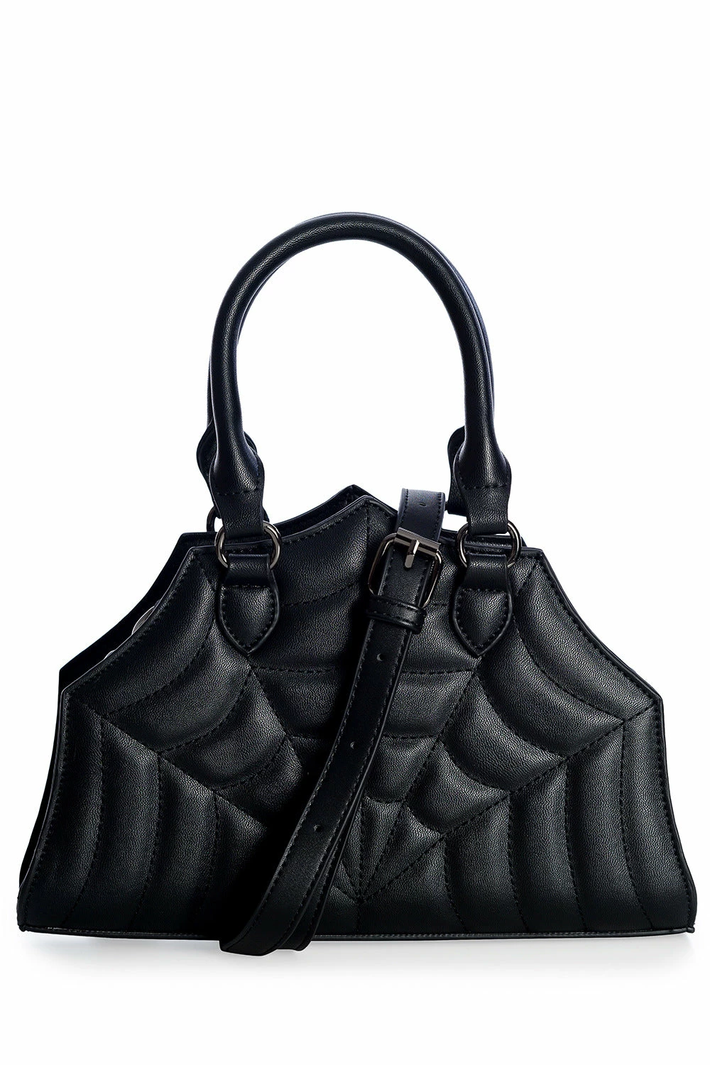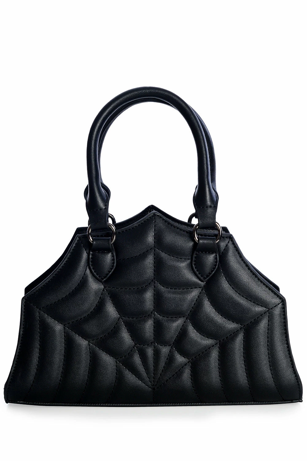 The black widow protected her earthly wares in a bag consumed by the spider’s web.