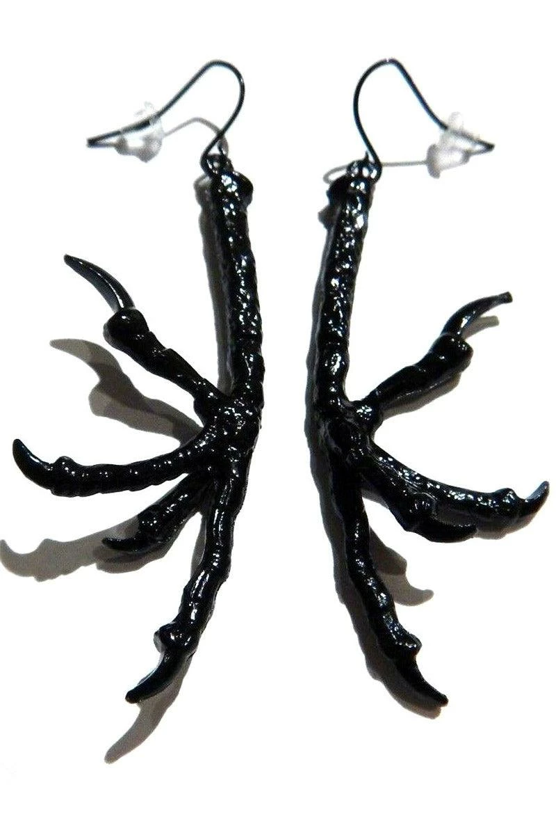 Bewitch your occult clothes with these hella haunting oddities earrings, featuring creepy crows feet! Keep it strange & unusual in the realistic 3D design, constructed of quality black metal. The sinfully perfect earrings for witchy women, dark hearts, and mistresses of the macabre.Â