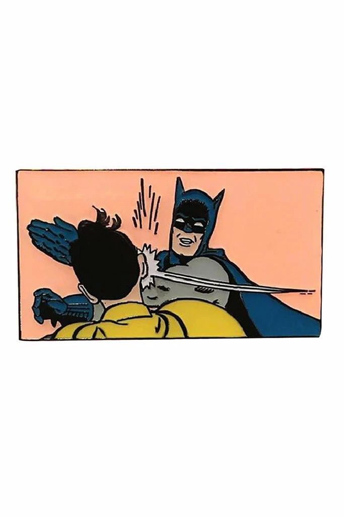 Finally… the internet-sensation “My Parents Are Dead” meme is blasted on a pin! Made of quality enamel, this hella hilarious pin features Batman bitch-slapping Robin outta Gotham! Pin this parody pin to your hoodie or backpack, complete with a back button closure for a sinfully strong hold.
