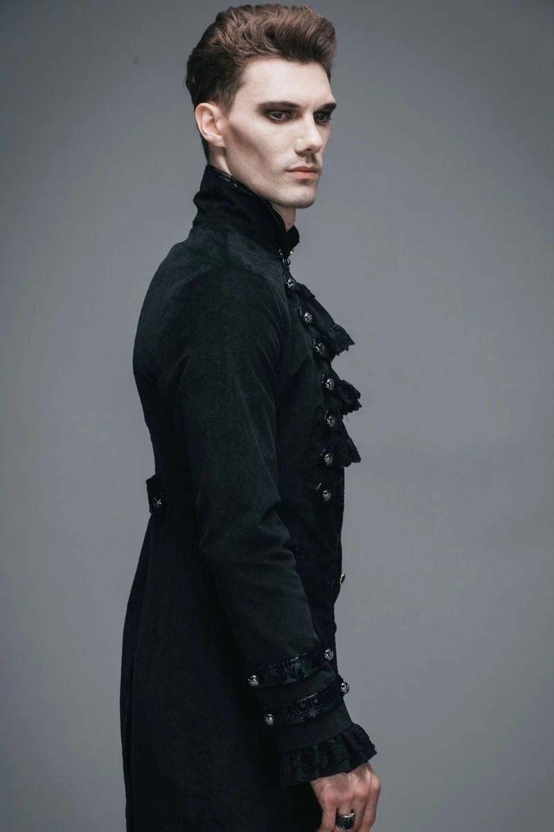 Black pirate jacket with subtle gothic victorian styling – great for weddings, formals, festivals and any special event.
