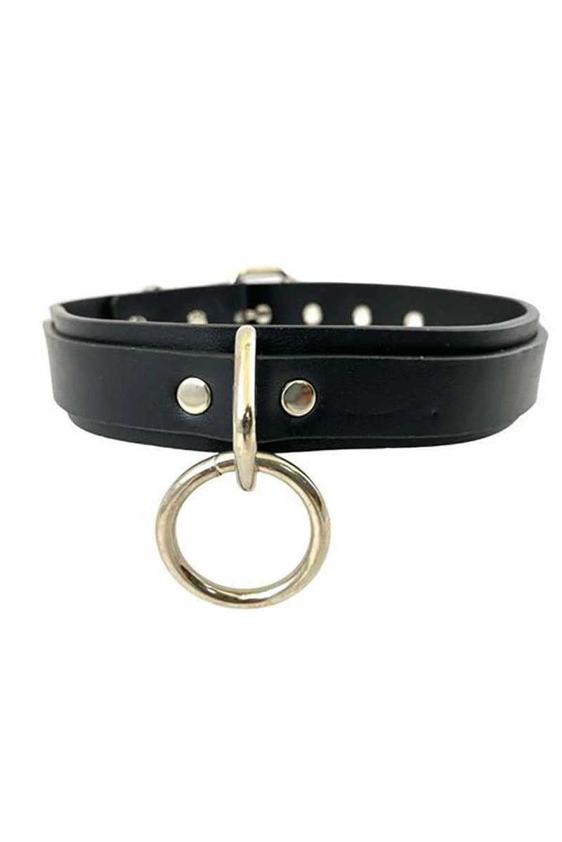 Summon some fetish to your fashion with this statement collar. This signature o-ring choker is constructed of deluxe leather for a bit of bondage. Wear it all night + day to summon some sexy spooks to your style!