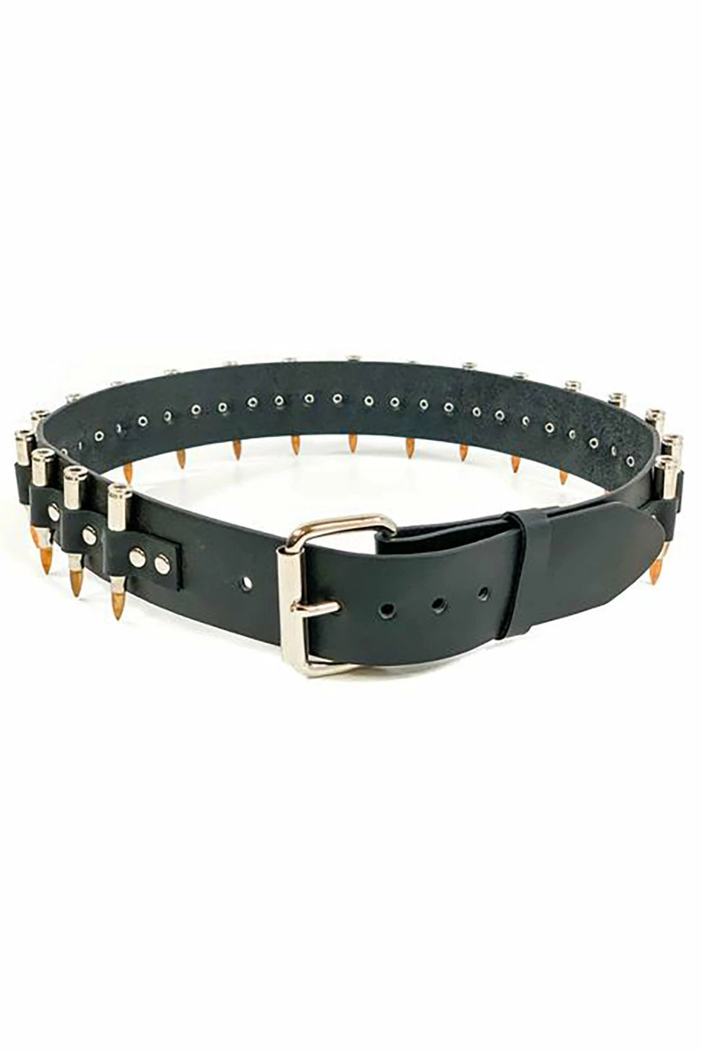 Roll up with some ammunition! Unleash your inner beast with the durable design, metal eyelets, and silver buckle closure. Conjure some combat to your punk clothes with the genuine leather construction, made with real bullet casings!