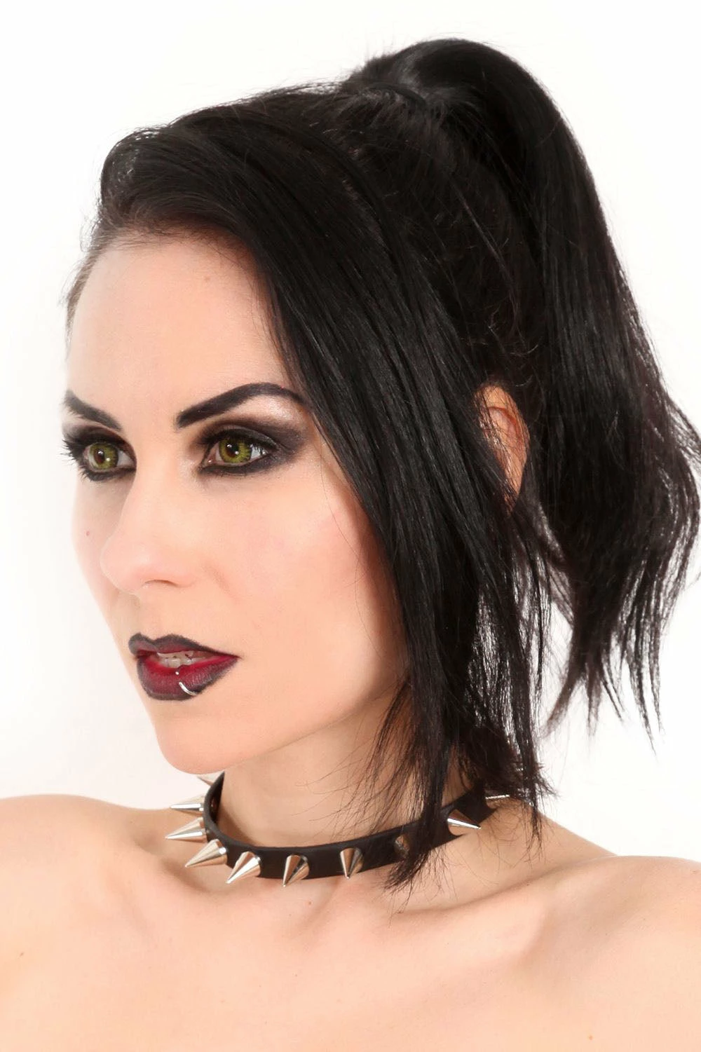 You’re a bondage babe in this sexy spiked collar, hot n’ loaded with silver cone studs. Made of deluxe genuine leather, this gothic choker is constructed to add some kills to your heartbreak hit list.
