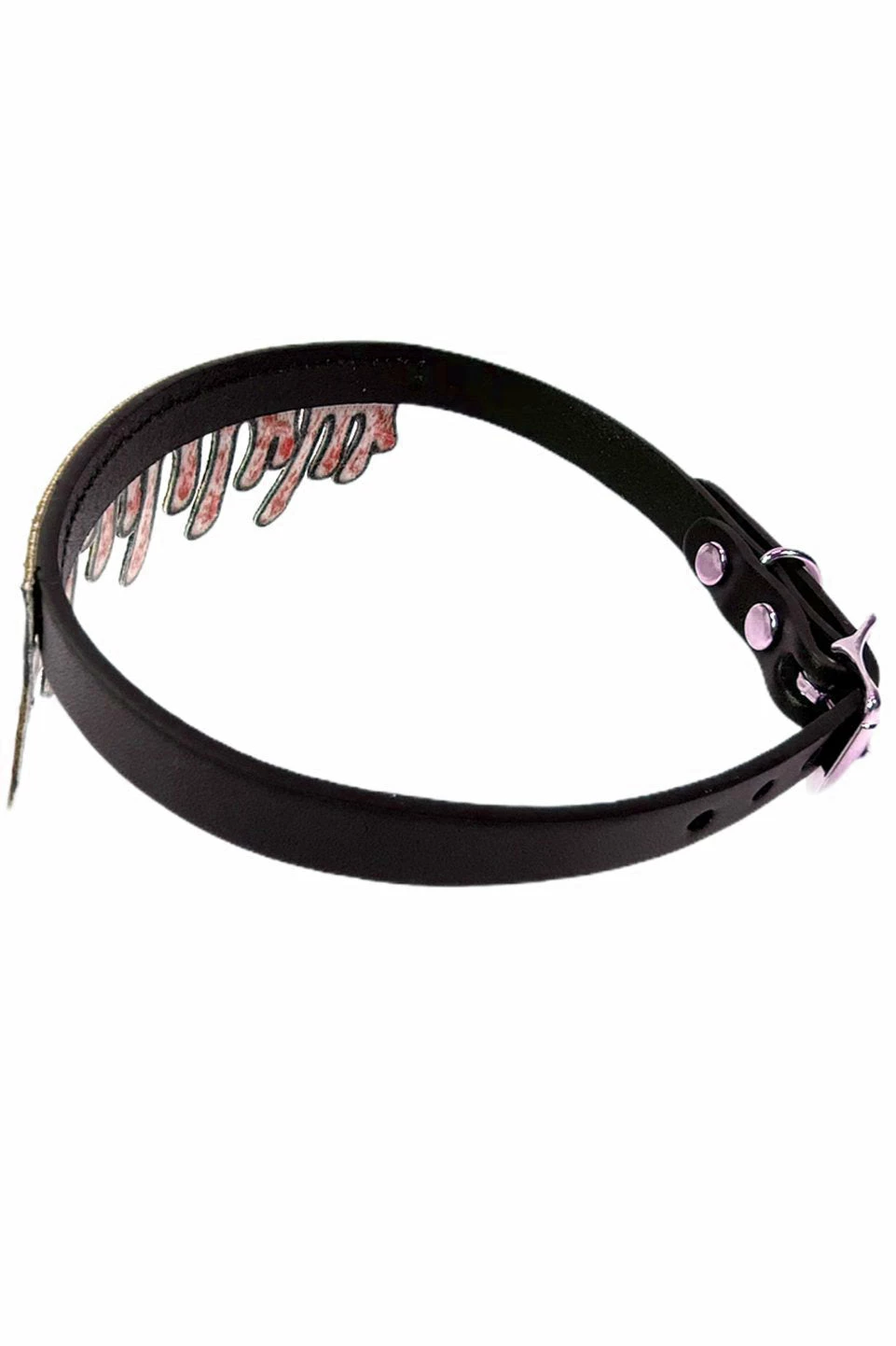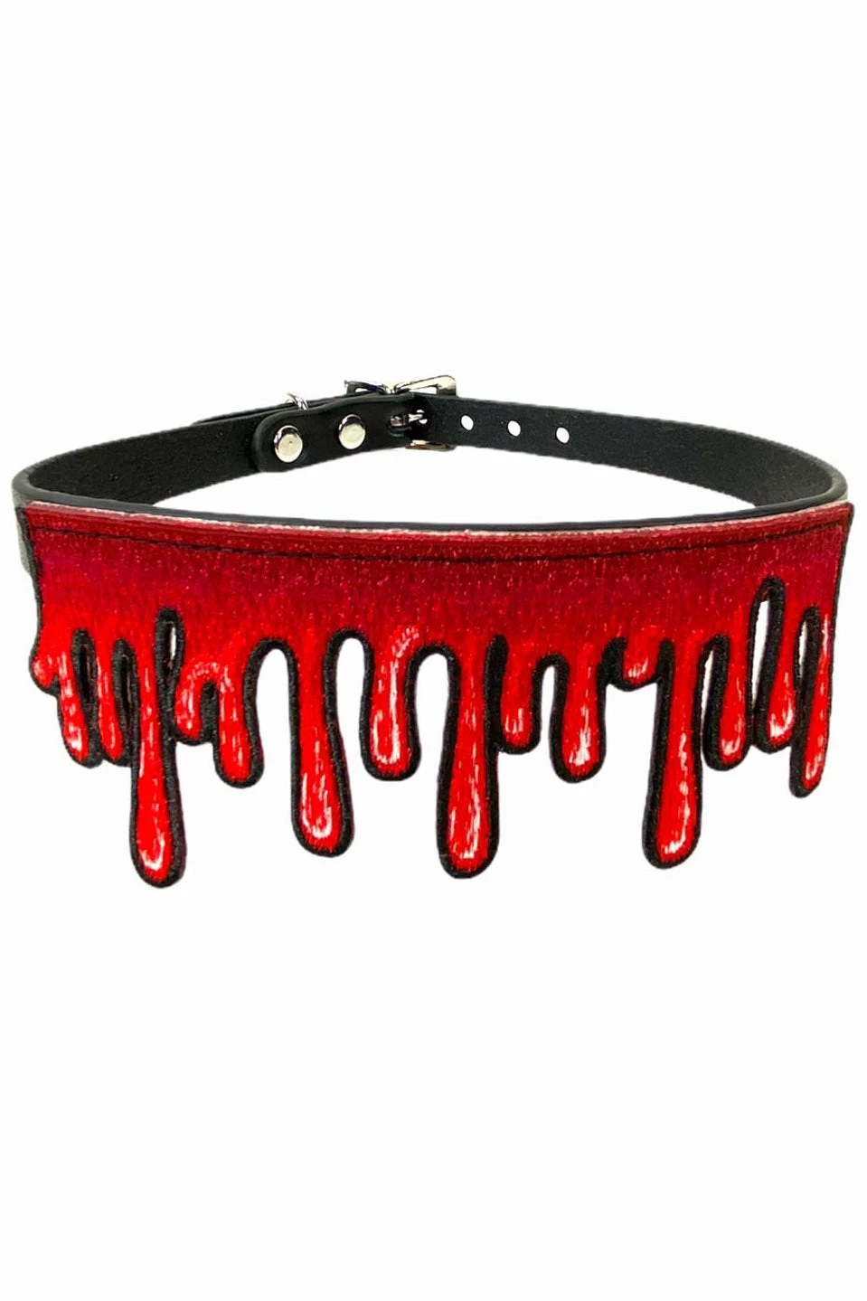 You’re a horror whore in this chilling choker, made for scream queens and kings! Bring some gore to your goth clothes with the dripping blood patch and genuine leather construction. No bones about it… you’ll never loose your head again!Â