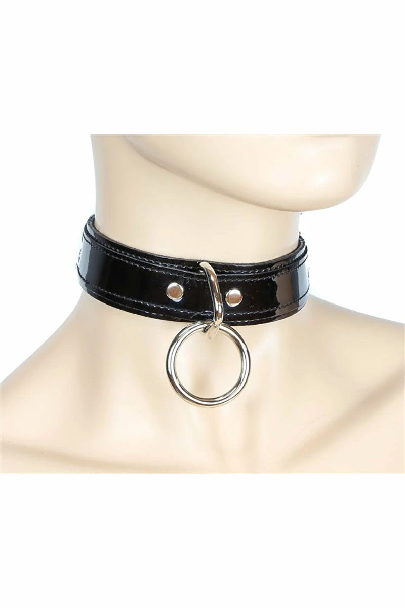 Every goth girl + boy needs a statement choker to creep out their closet. This staple o-ring collar is constructed of deluxe vinyl for a bit of bondage. Wear it all night + day to summon some sexy spooks to your style!