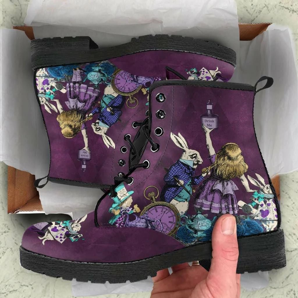 Darker tones for Alice in Wonderland on a Vegan Leather boot.Â