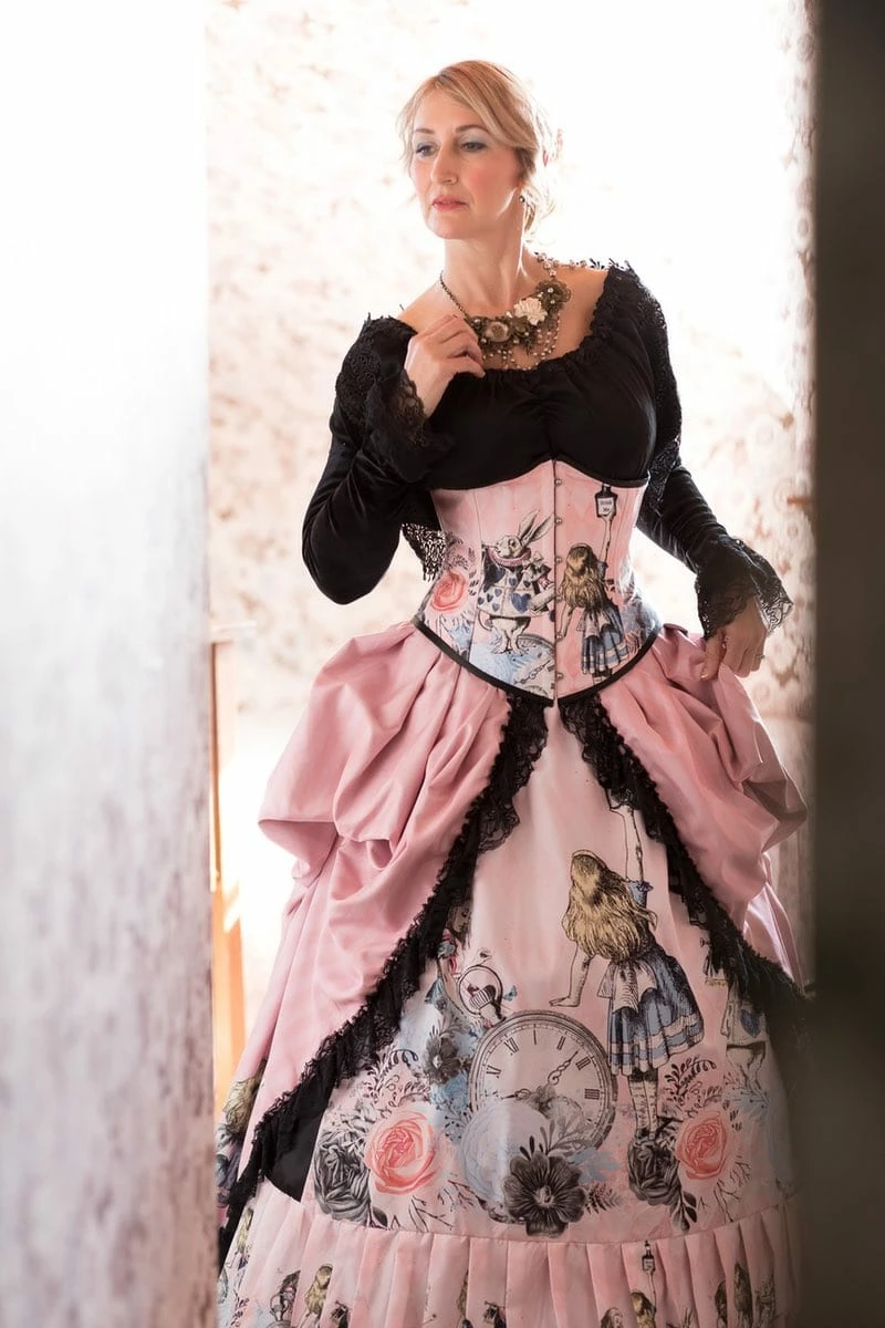 Our hope is that this Alice in Wonderland corset gown will make you feel delighted whether it’s for your wedding, special birthday party or Mad Hatters Tea Party.