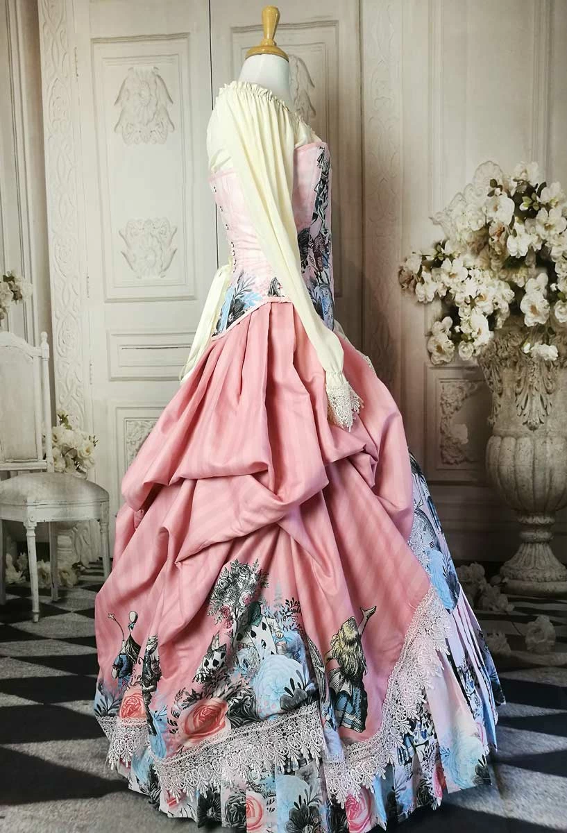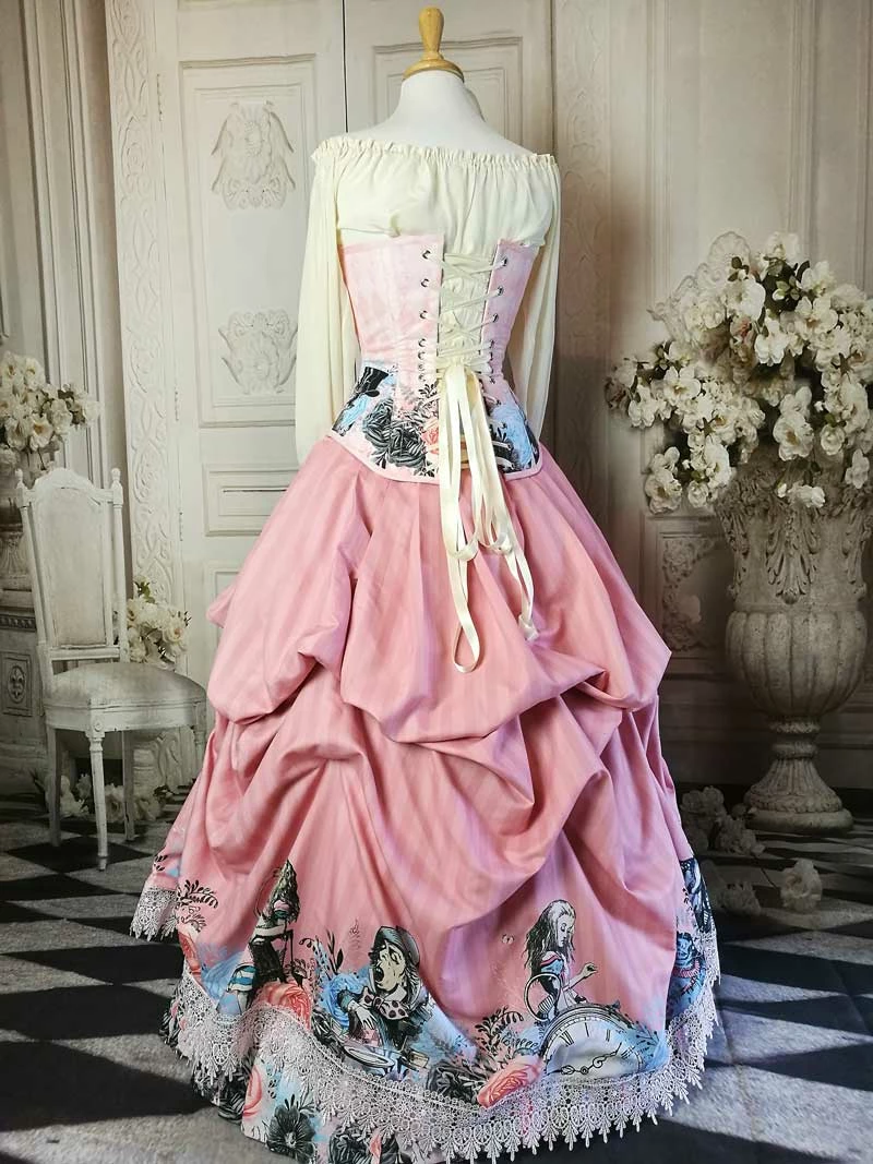 5. The current under corset top is a soft cream long sleeved chemise, subject to fabric availability. If you prefer a matching pink short sleeved or long sleeved chemise please note that the price for the gown will be higher.