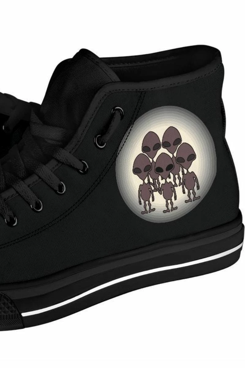 - Full canvas with double sided Alien TikTok group print on black with a rounded toe construction.