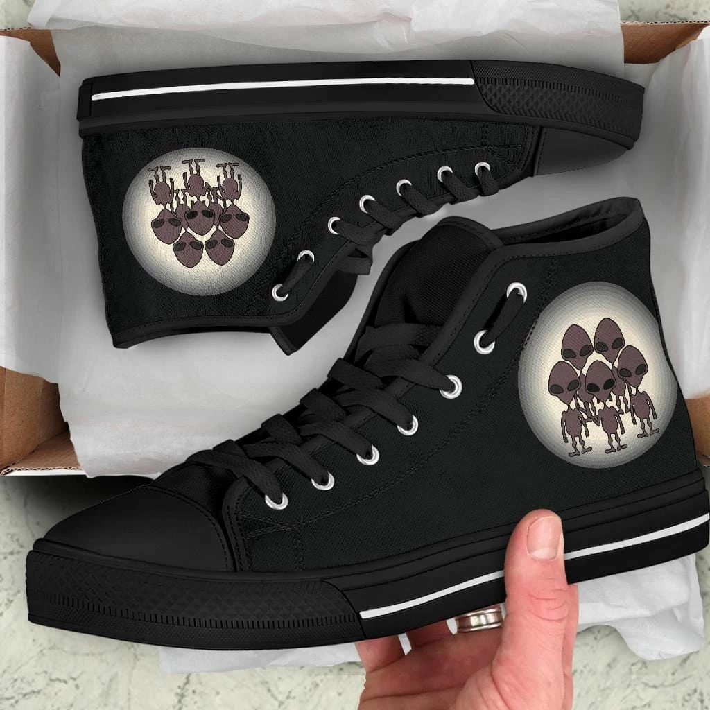 We Came To TikTok Alien Hi Tops are custom-made-to-order. Please choose your EU size when ordering.