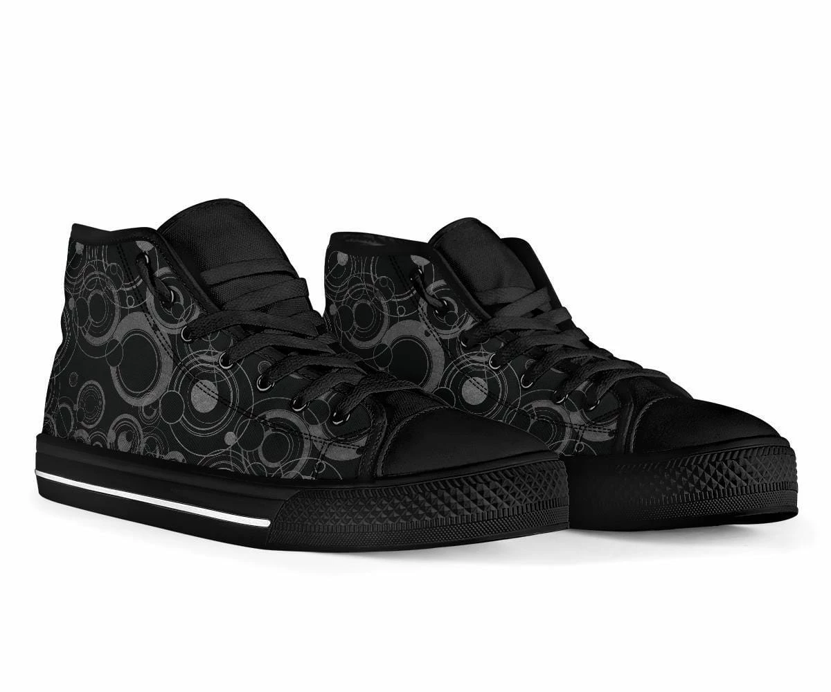 Black Gallifreyan (the language of Gallifrey from Dr Who) Hi Tops are custom-made-to-order. Please choose your EU size when ordering.