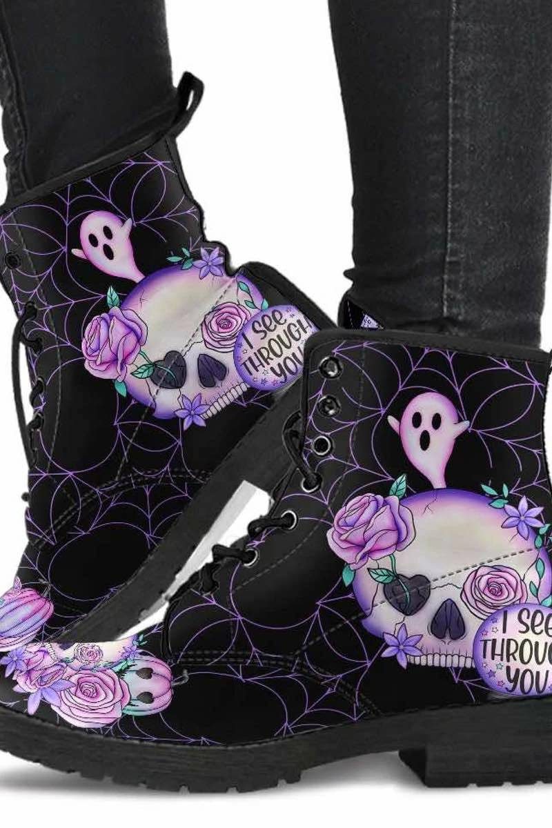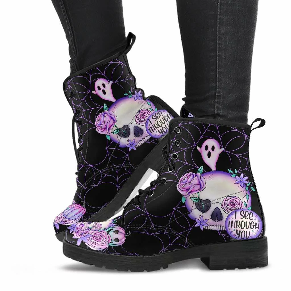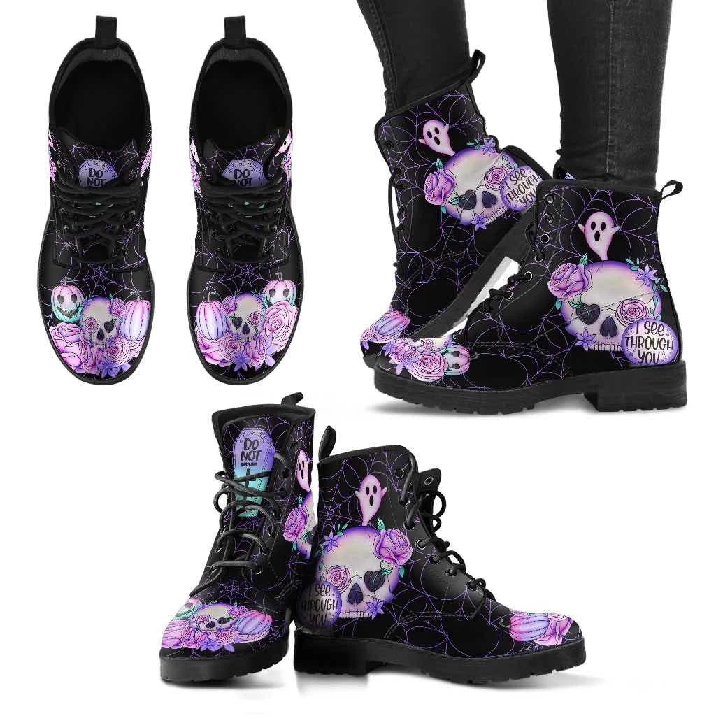 Cute spooky pastel goth ‘I See Through You’ graphics on black.