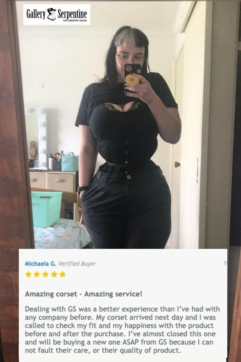 - Choosing a size that is 6″/15cm SMALLER than your waist & hip measurements if you are new to corseting. *Remember the corset is going to work it’s cinching magic so it has to be smaller than you are!*
