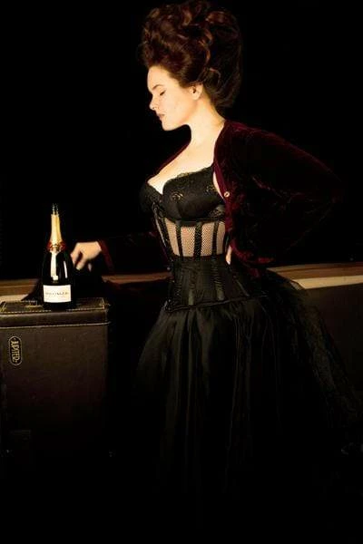 - Feel sexy and strong in this high quality steel boned black mesh Dark Desire under bust corset. Â