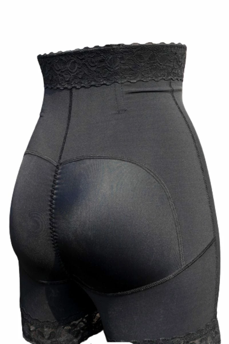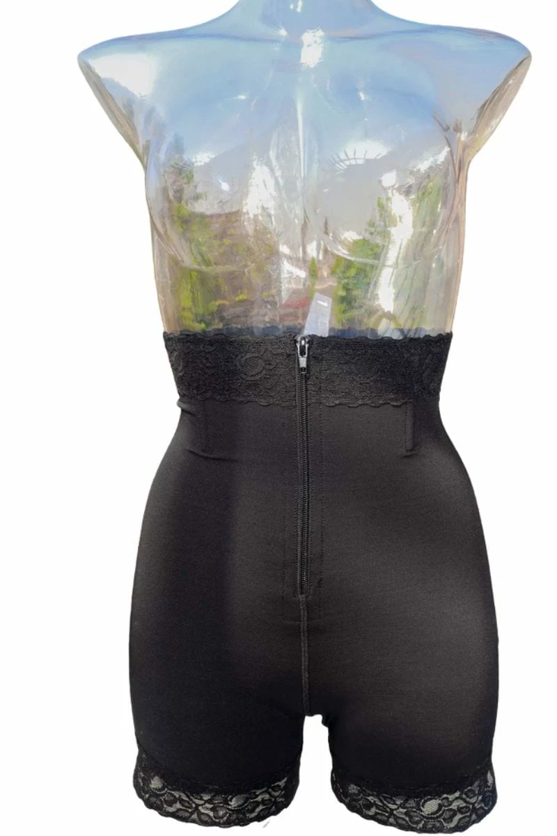 These fajas smooth and shape upper to mid thigh, lower abdomen to just above waist. More sizes available on request. Very pretty lace trimmed design with zip.