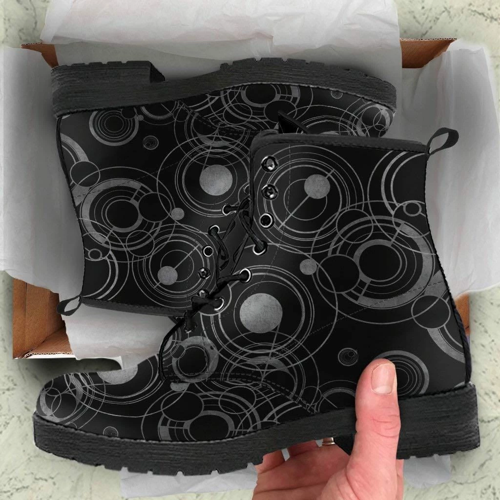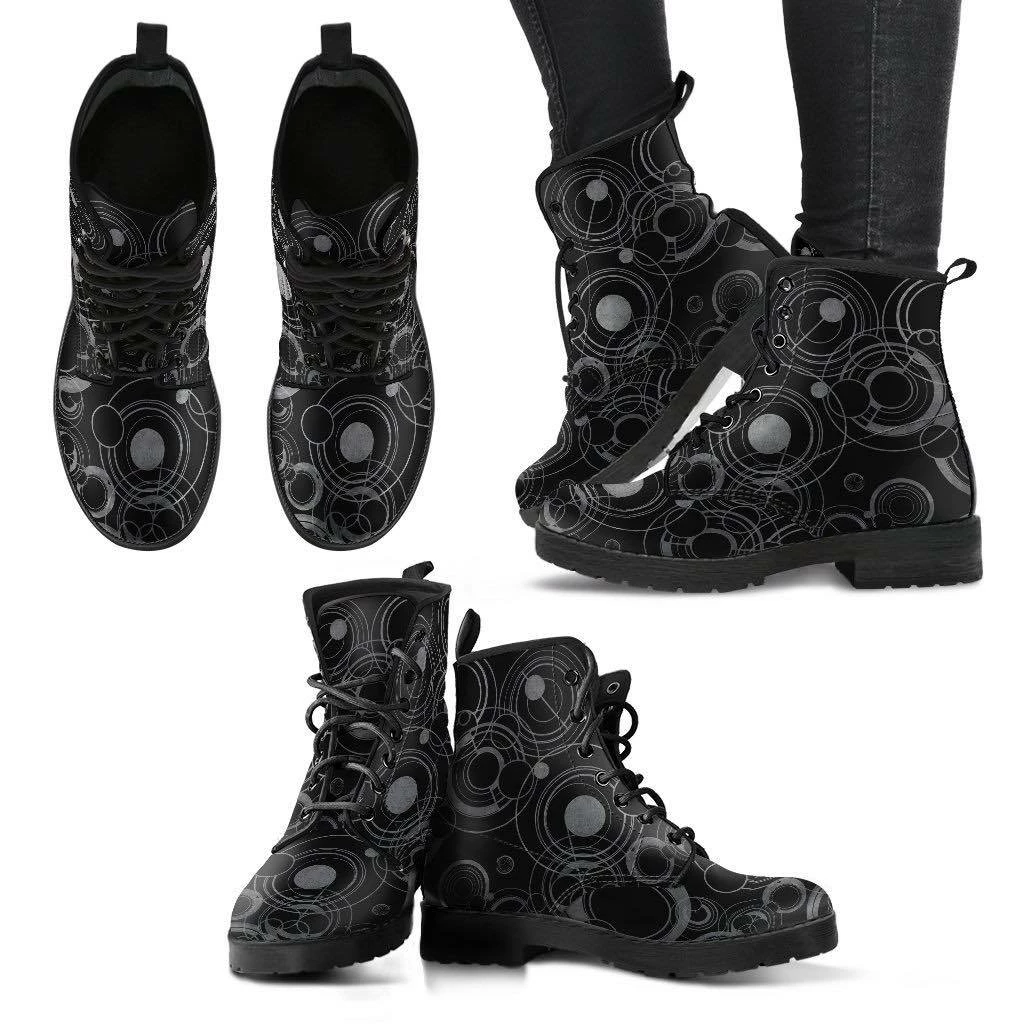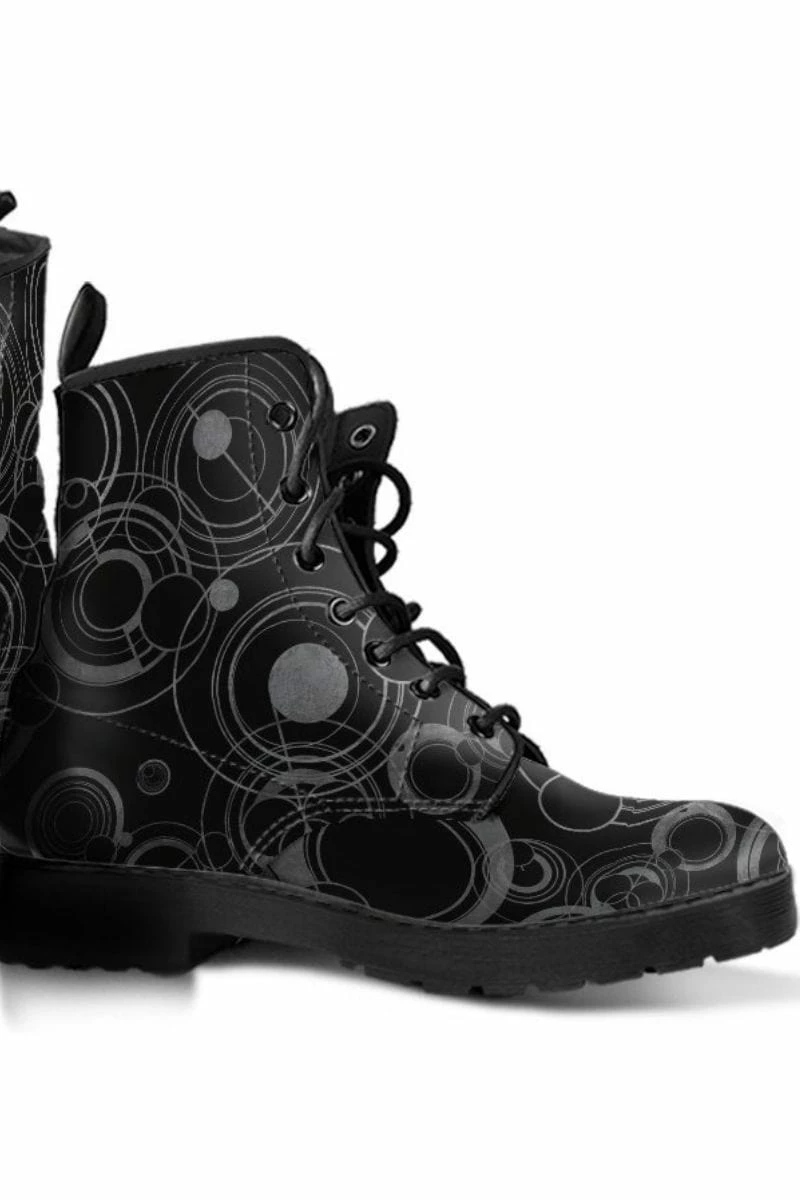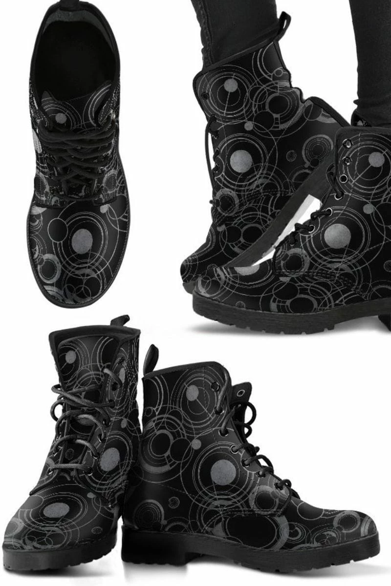 NEW! Black and grey Gallifrey Language print on a Vegan Leather boot.Â