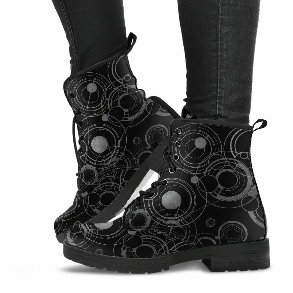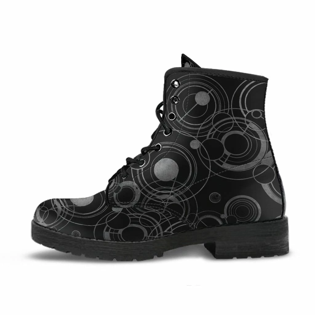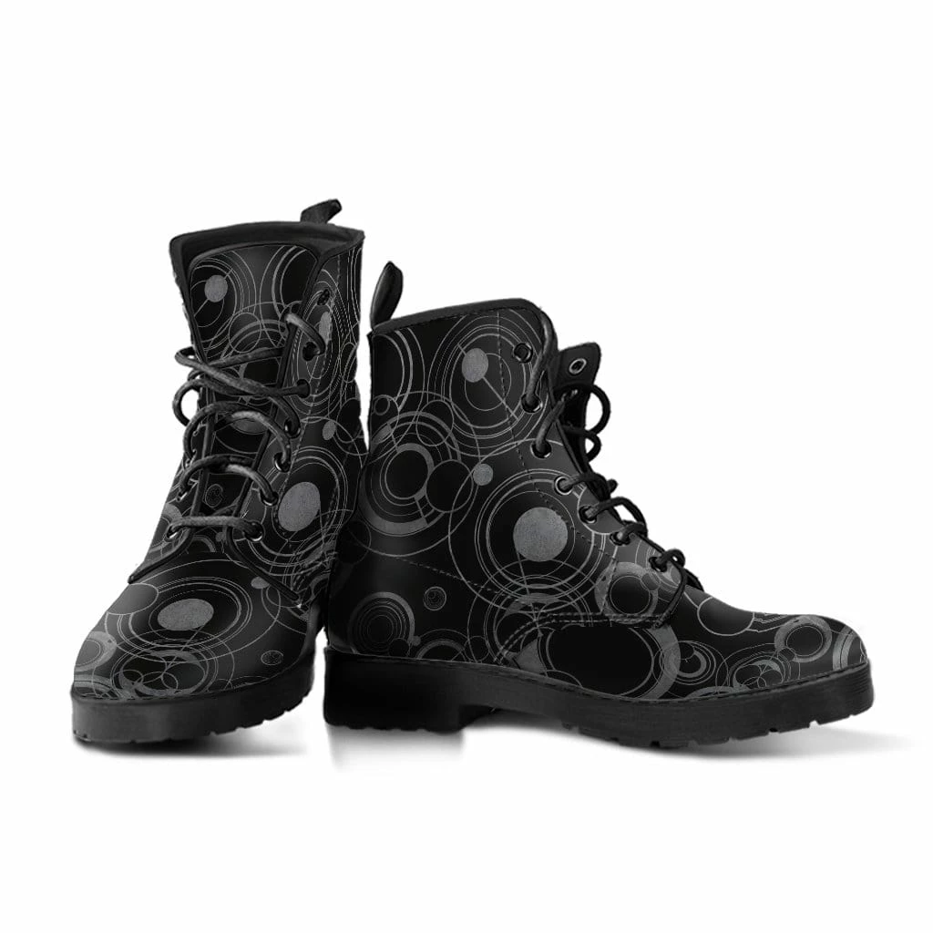 NEW! Black and grey Gallifrey Language print on a Vegan Leather boot.Â