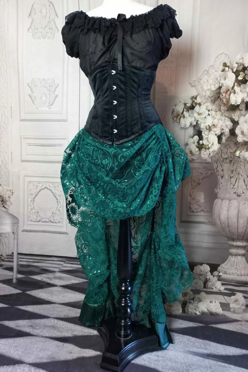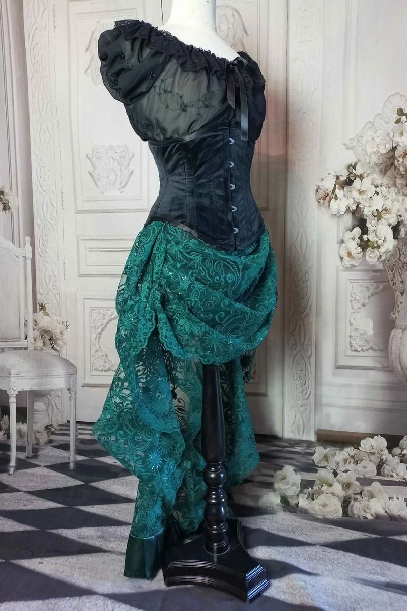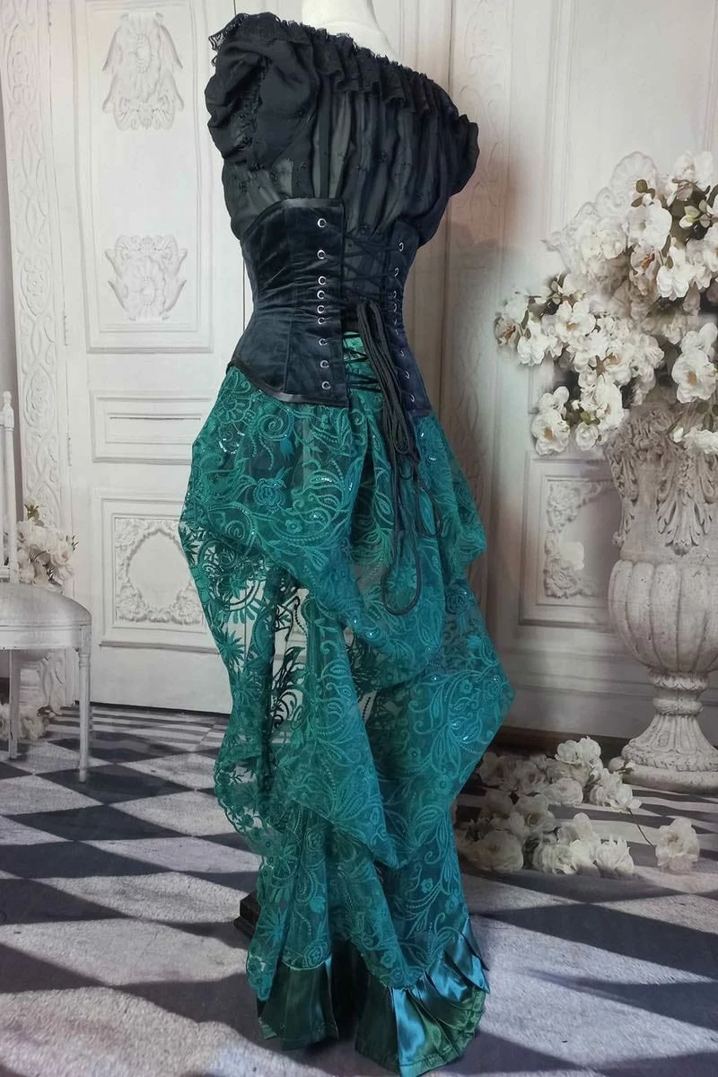 A gorgeous green lace bustle skirt inspired by the Victorian era.