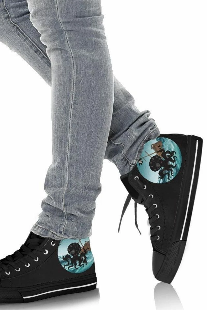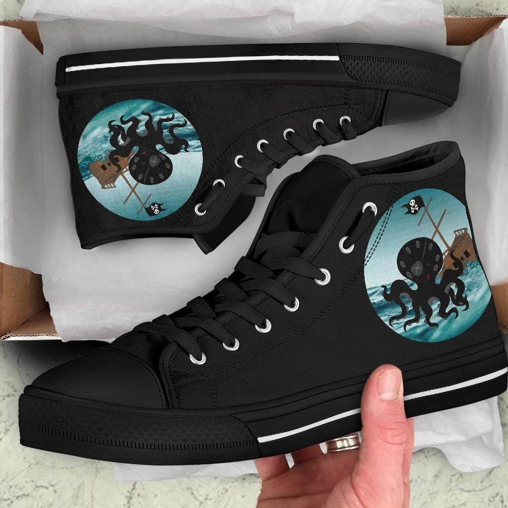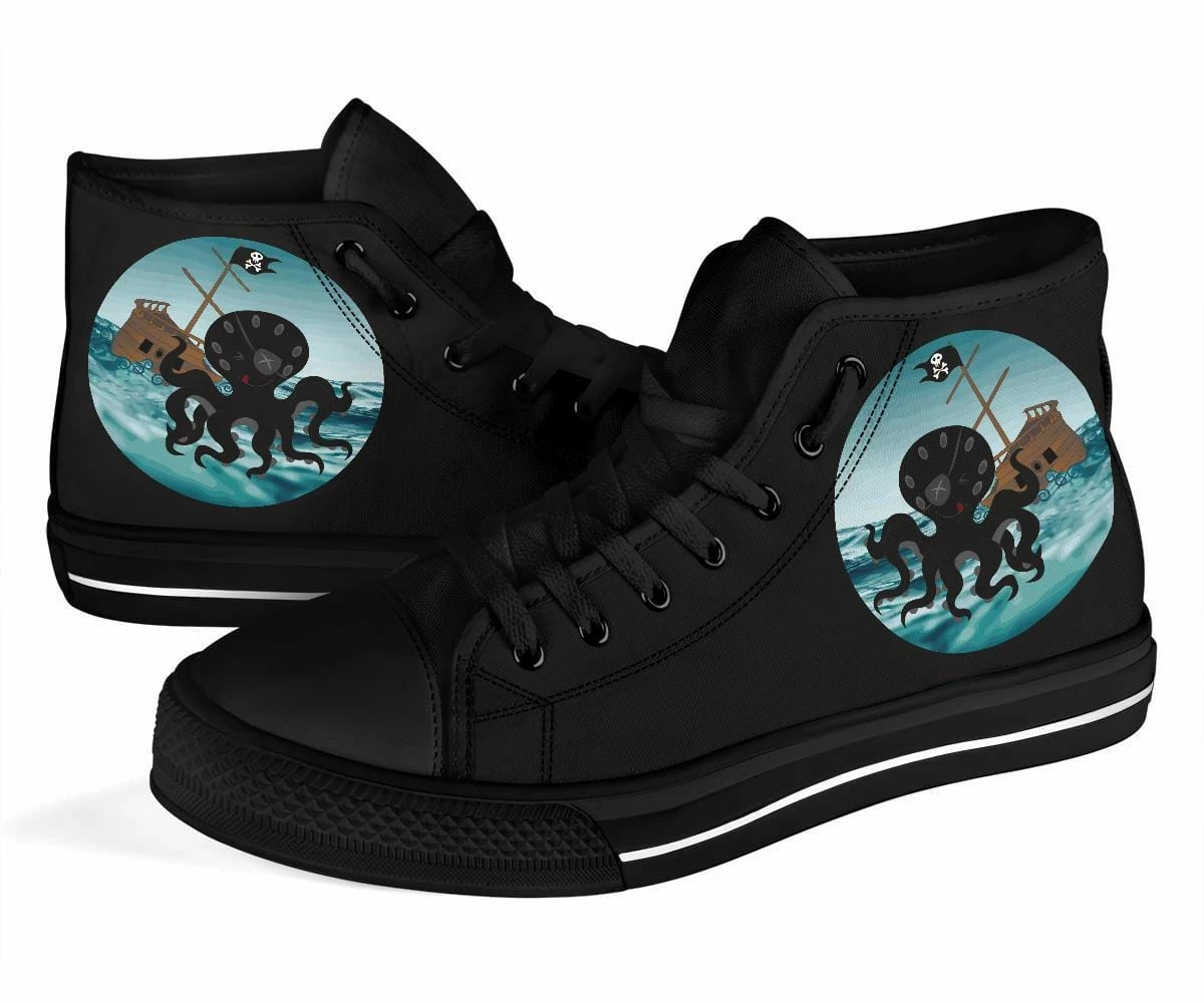 - Full canvas double sided Kraken & pirate ship print on black with a rounded toe construction.