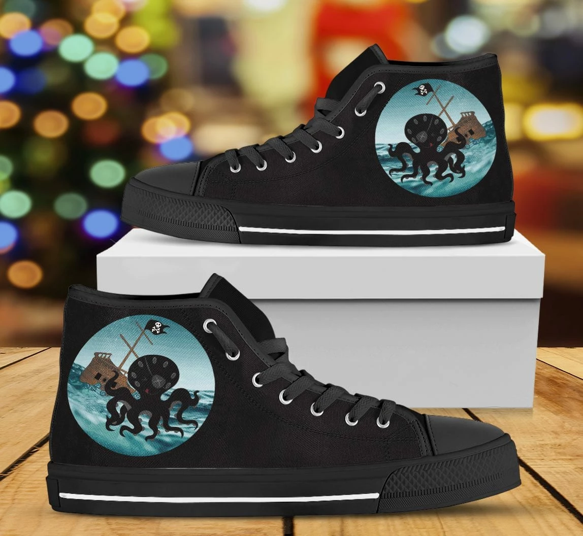 Happy Kraken Hi Tops are custom-made-to-order. Please choose your EU size when ordering.