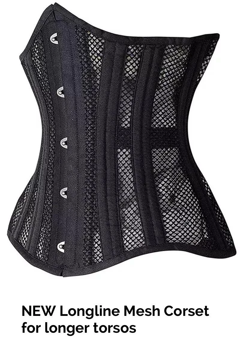 A new heavier weight mesh under bust corset for our customers who are looking for waist control or waist training and need a longer torso corset.