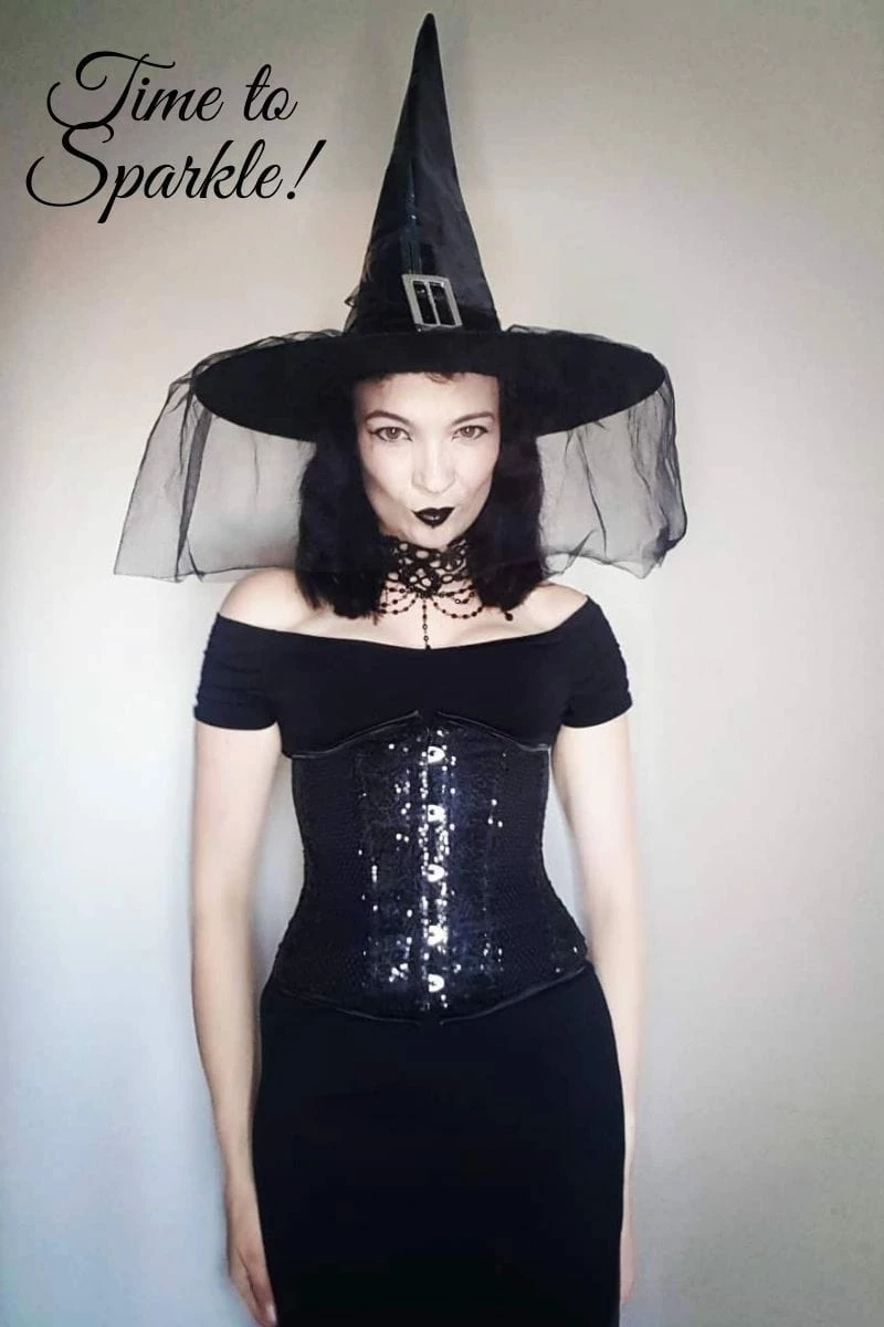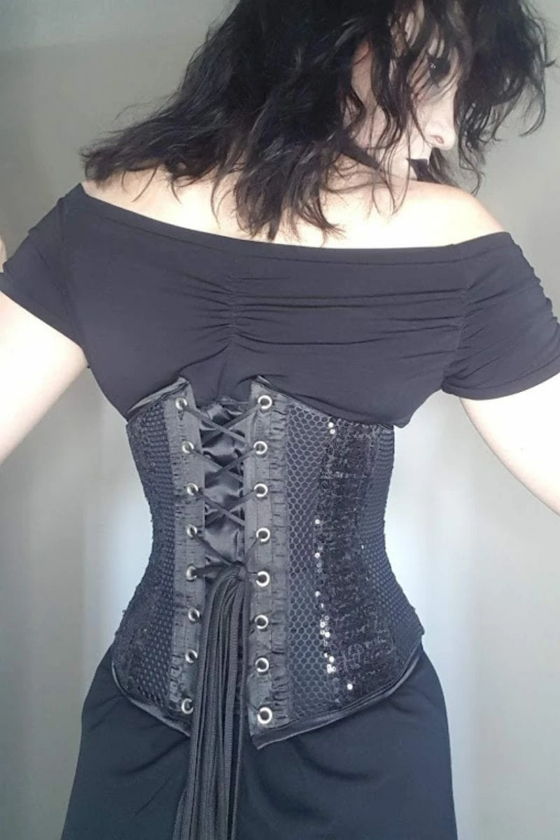 Midnight Sparkle Under bust corset is perfect for parties or as a burlesque performance corset. Â
