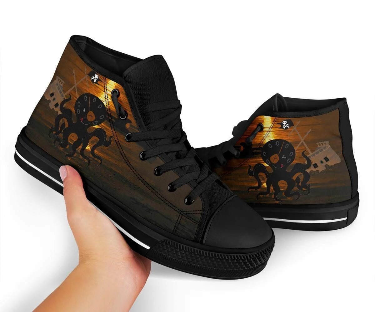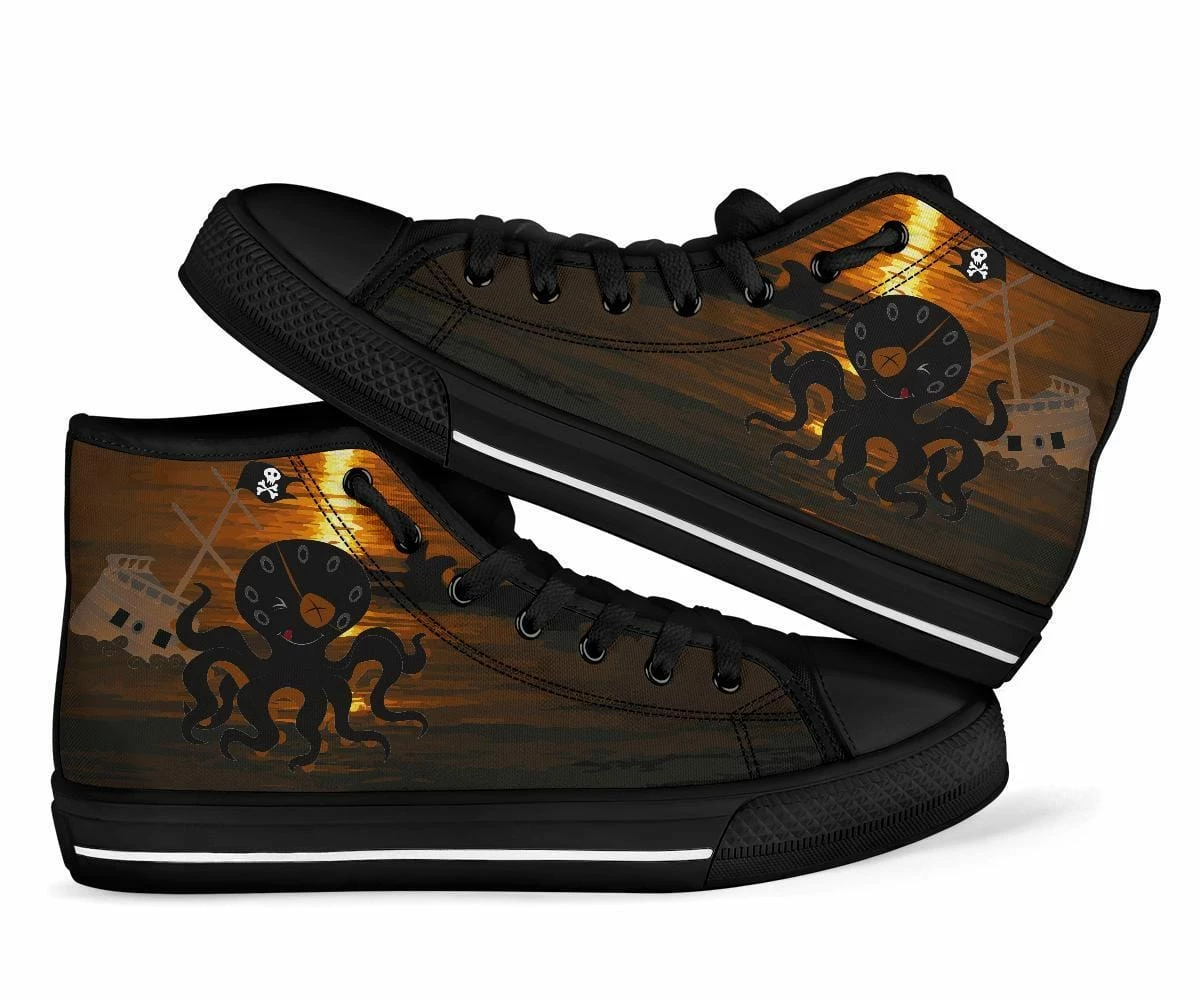 - Full canvas double sided cute pirate Kraken print on a quality high top sneaker with a rounded toe construction.