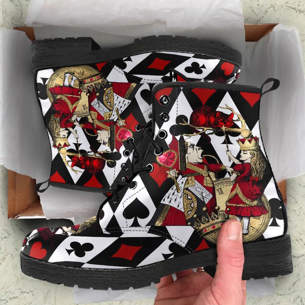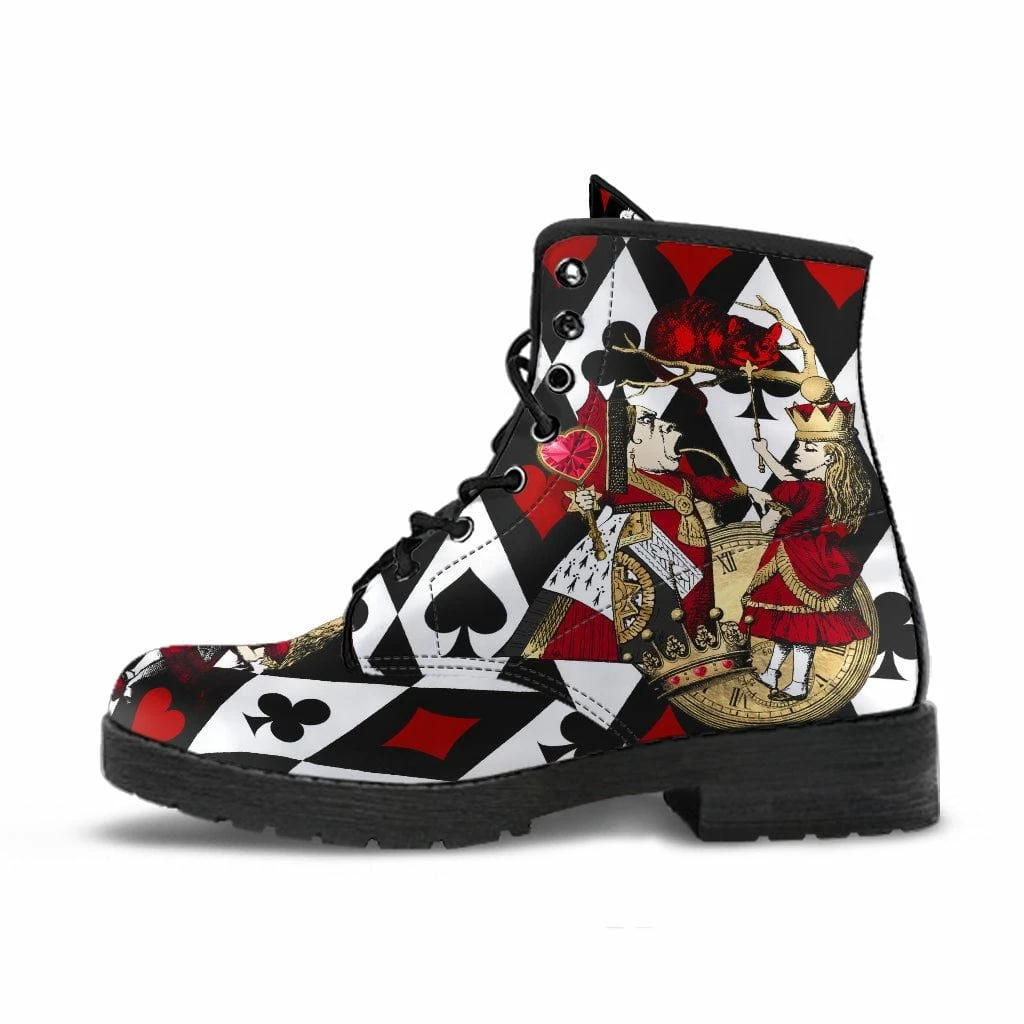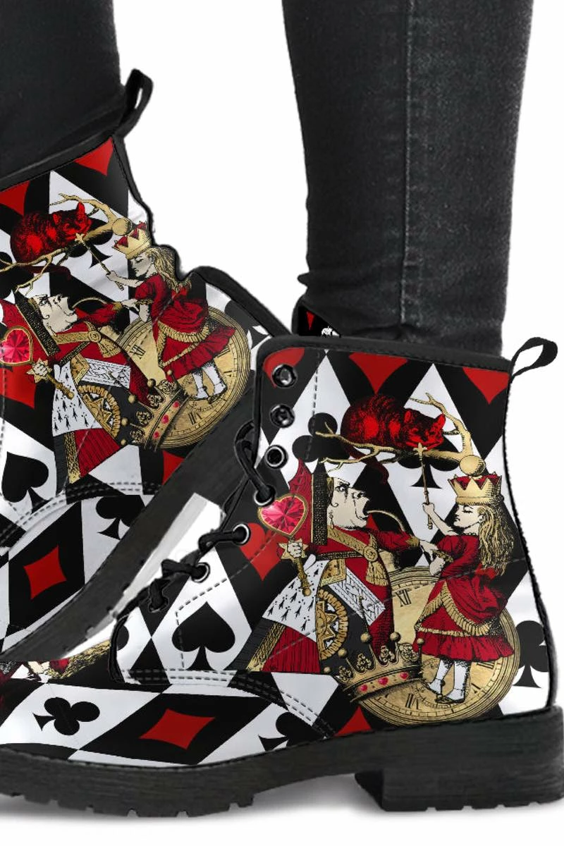 Lively Queen of Hearts and Alice in Wonderland playing cards boots