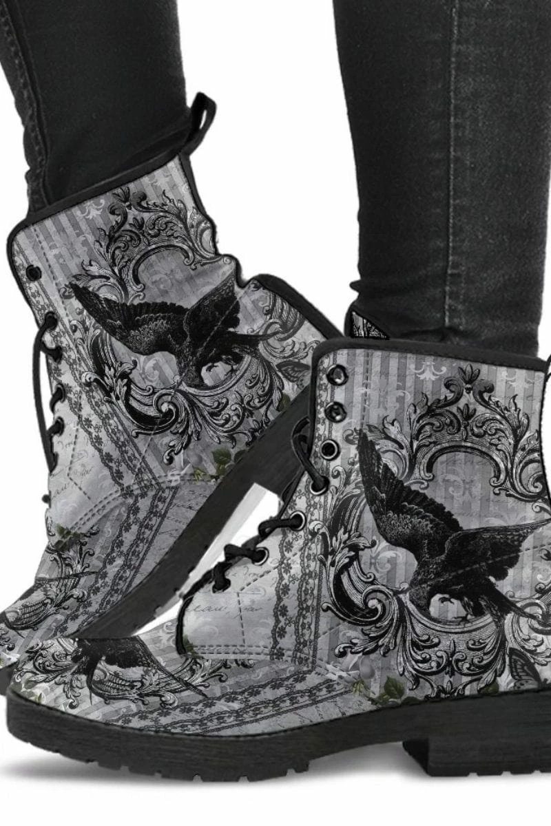 NEW! Black and grey Raven print on a Vegan Leather boot.