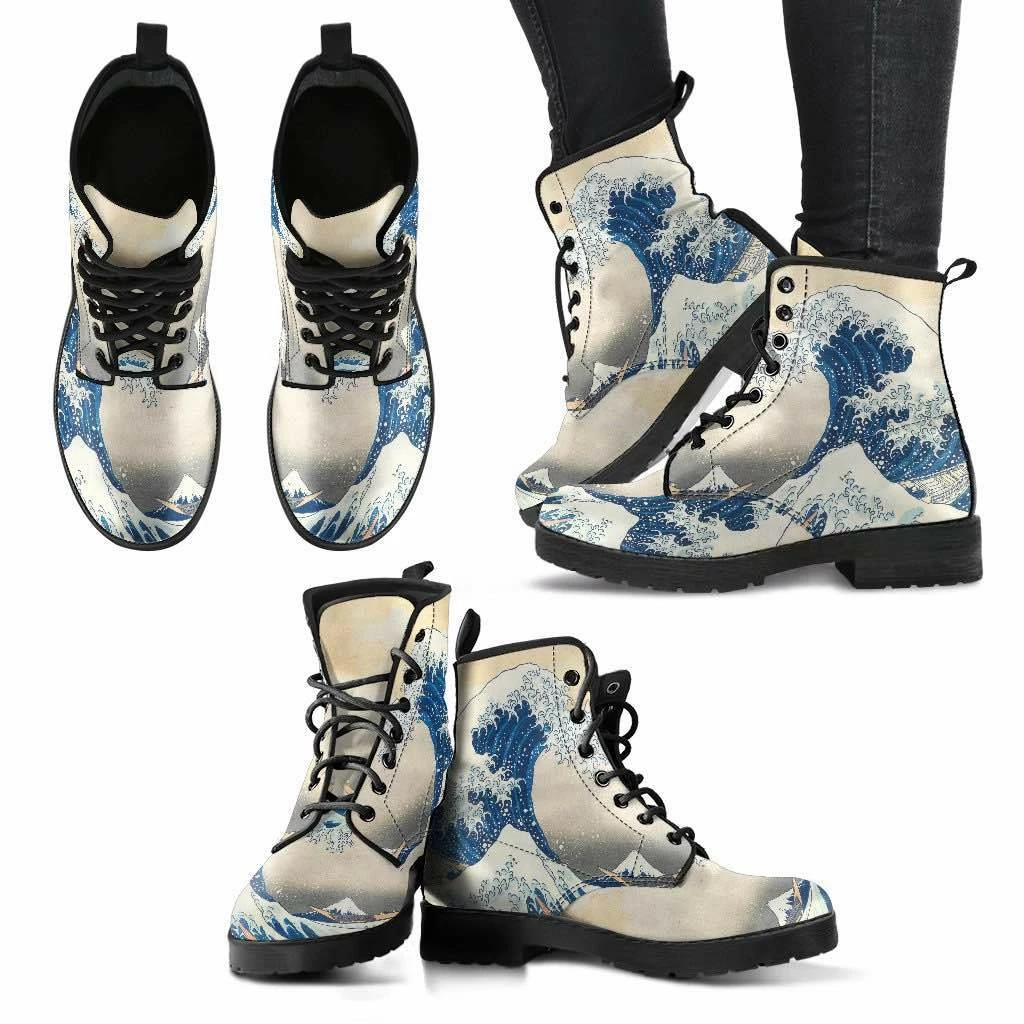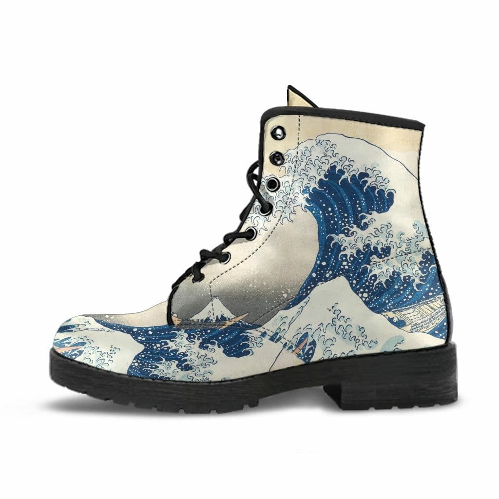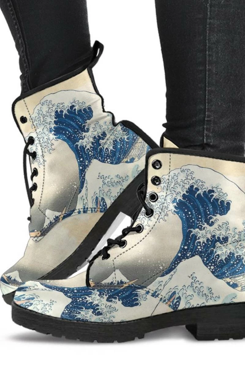 - These Great Wave printed boots have a rounded toe.