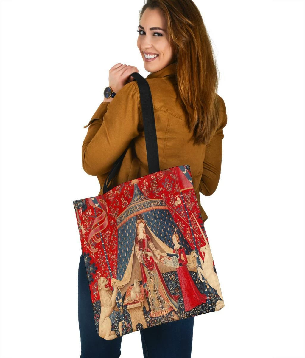 Gorgeous Lady & the Unicorn hand crafted Tote Bag – a delightful gift for birthdays and Christmas presents. *Matches our boots and washable face mask*