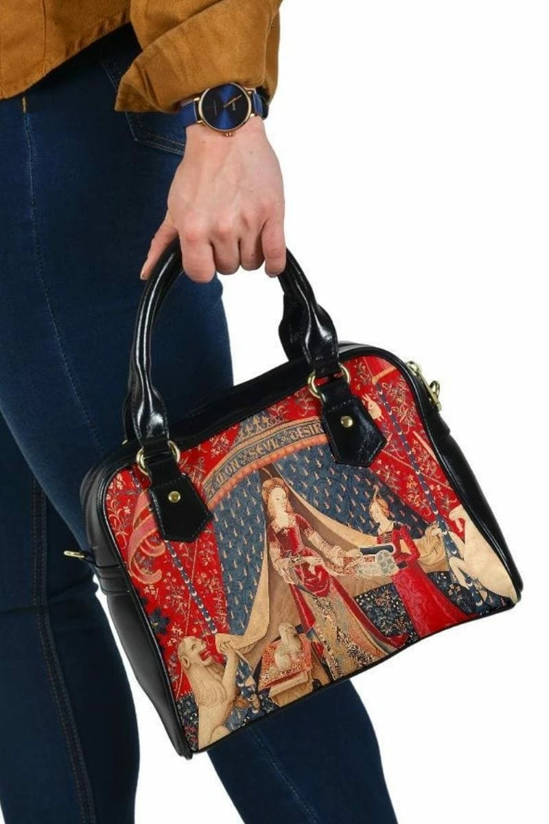 This richly coloured Lady & the Unicorn Shoulder Handbag is custom-made-to-order and handcrafted to the highest quality standards.