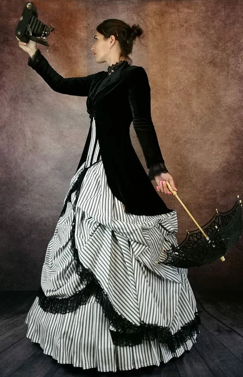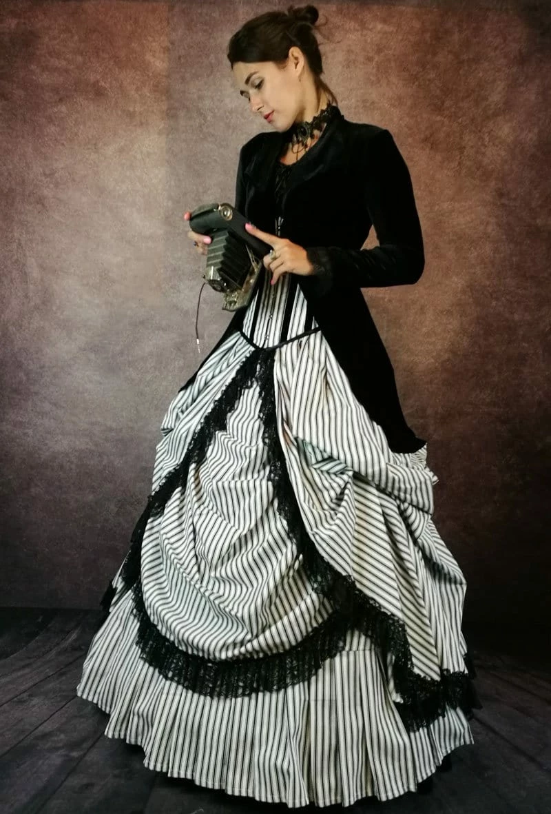 Adorable black & white striped cotton corset gown inspired by the wonderous pictures of victorian era picnics!