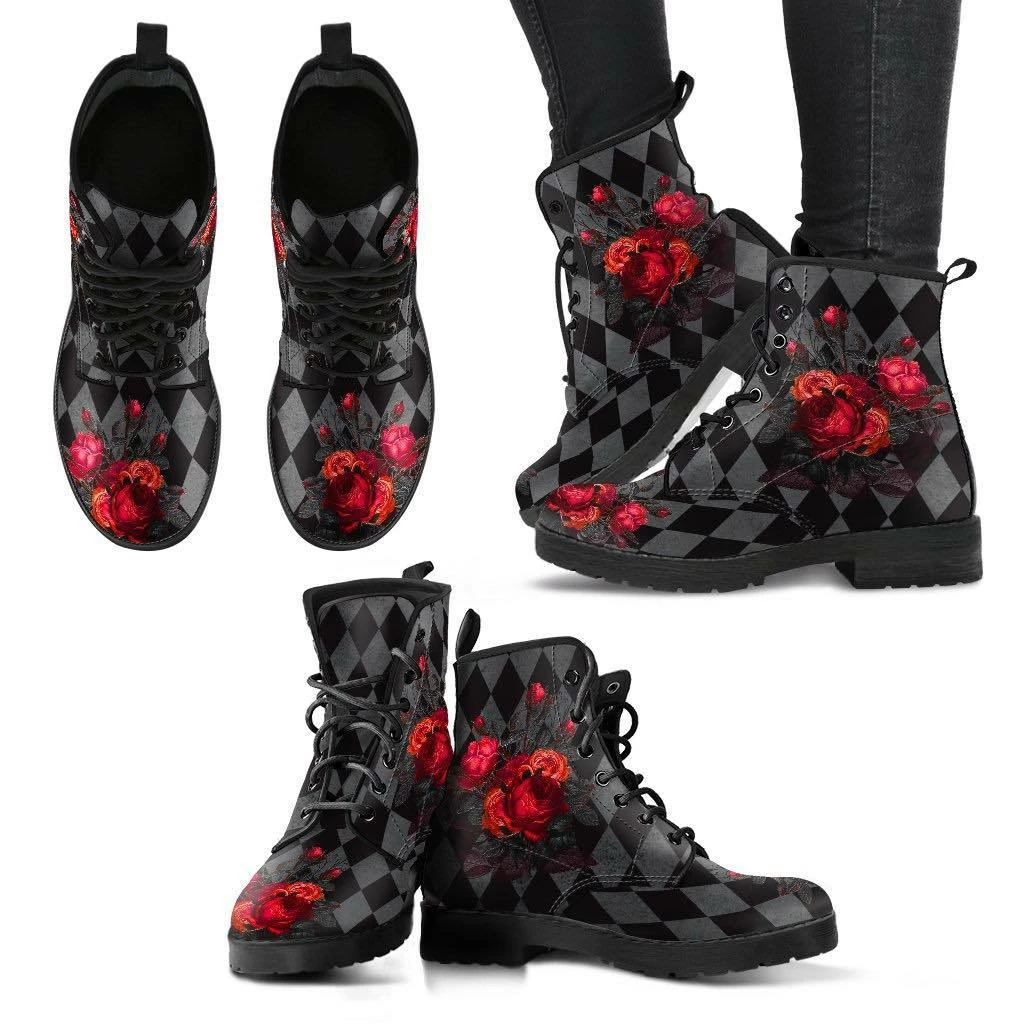 WITH FREE SHIPPING! Wild Roses- these gorgeous gothic combat boots are custom printed when you orderÂ