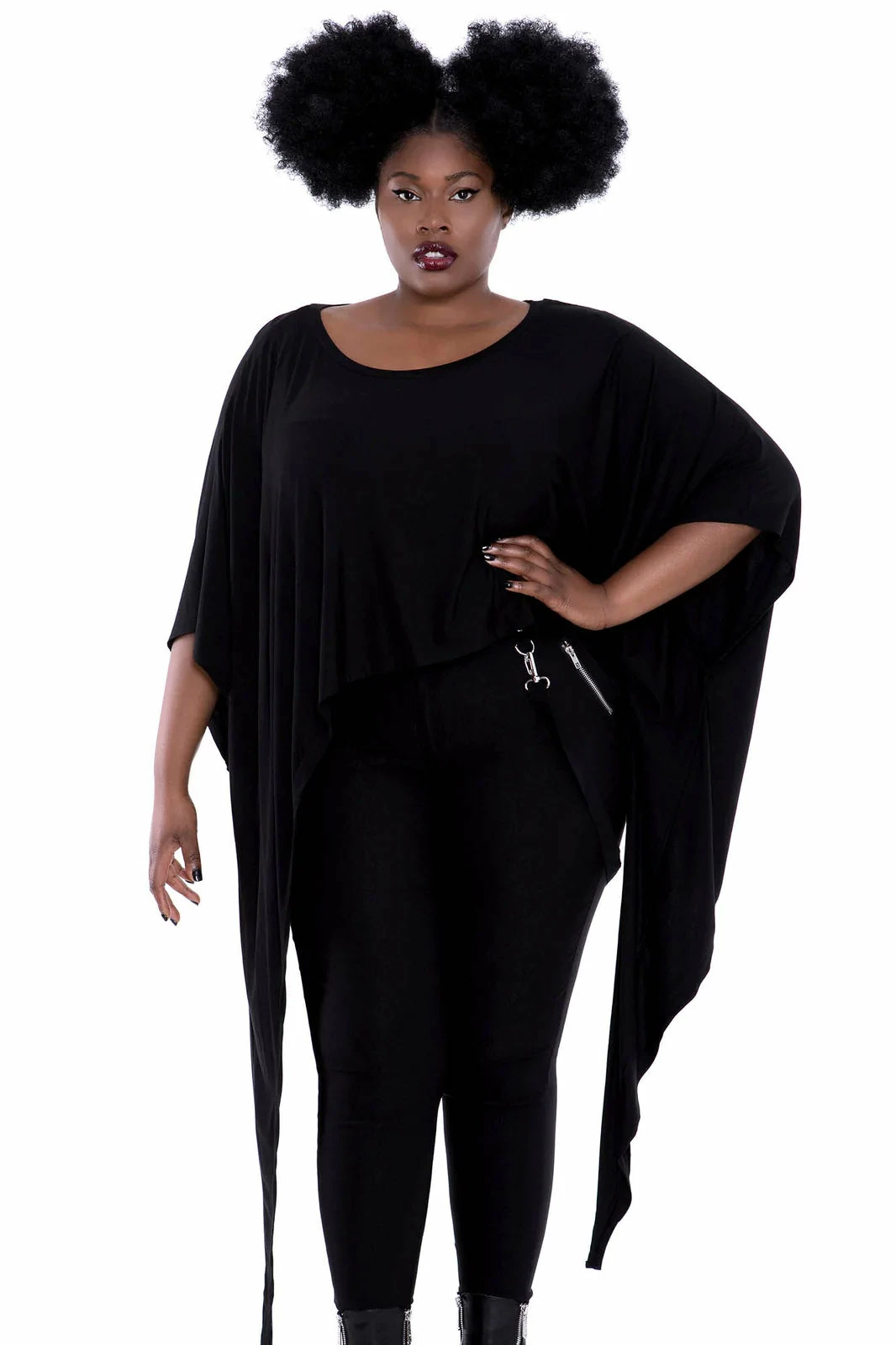 It’s a dark paradise! Getting down and spooky with the ‘Celestial Bodies’ statement top; an oversized body made of the softest stretch-jersey – that flows with movement perfectly! Complete with extra wide neck, slightly cropped body with wide sleeves and exaggerated hanky hems! Perfect for club visitations, infernal affairs and leaving the crypt at dusk/dawn.