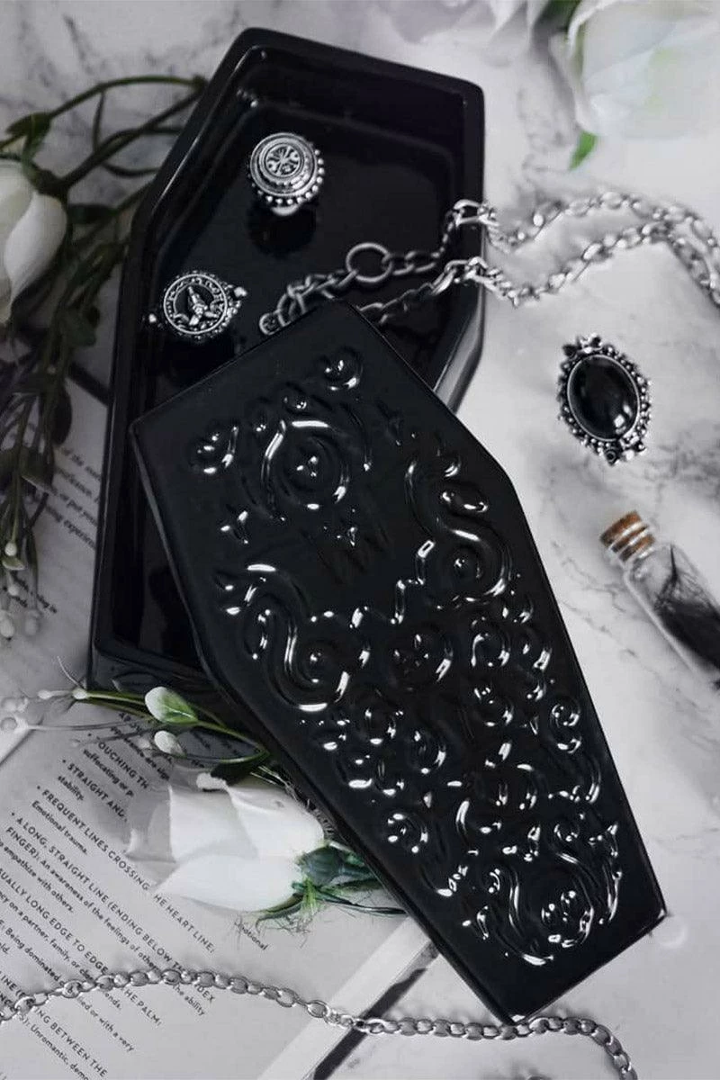 Home sweet haunted home. Add a bit of spooky to your crypt with our ‘Daemon’ coffin box – complete with a ceramic lid. Perfect for storing crystals, knick-knacks, keys, secret stuff or whateverz!