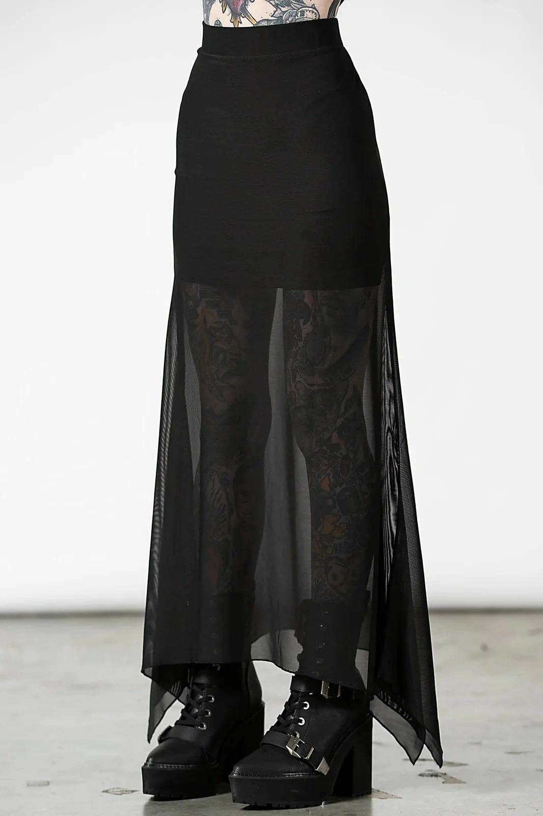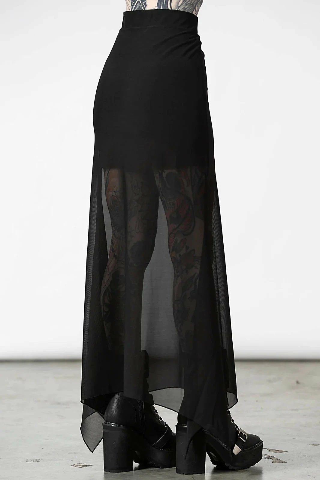Embrace your dark side with our ‘Death Star’ Maxi skirt. Crafted in soft, stretch material with a mini underskirt and long mesh overskirt featuring a hanky hem. Simple, but never basic – a perfect staple for any dark wardrobe!