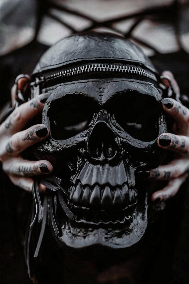 Obsessing about skulls since forever? The ‘Grave Digger’ handbag is yer creepy must-have – large human skull handbag – with intricate detailing, zip opening, long shoulder strap and detachable tassel detail. All Hail the Halloween Queen!