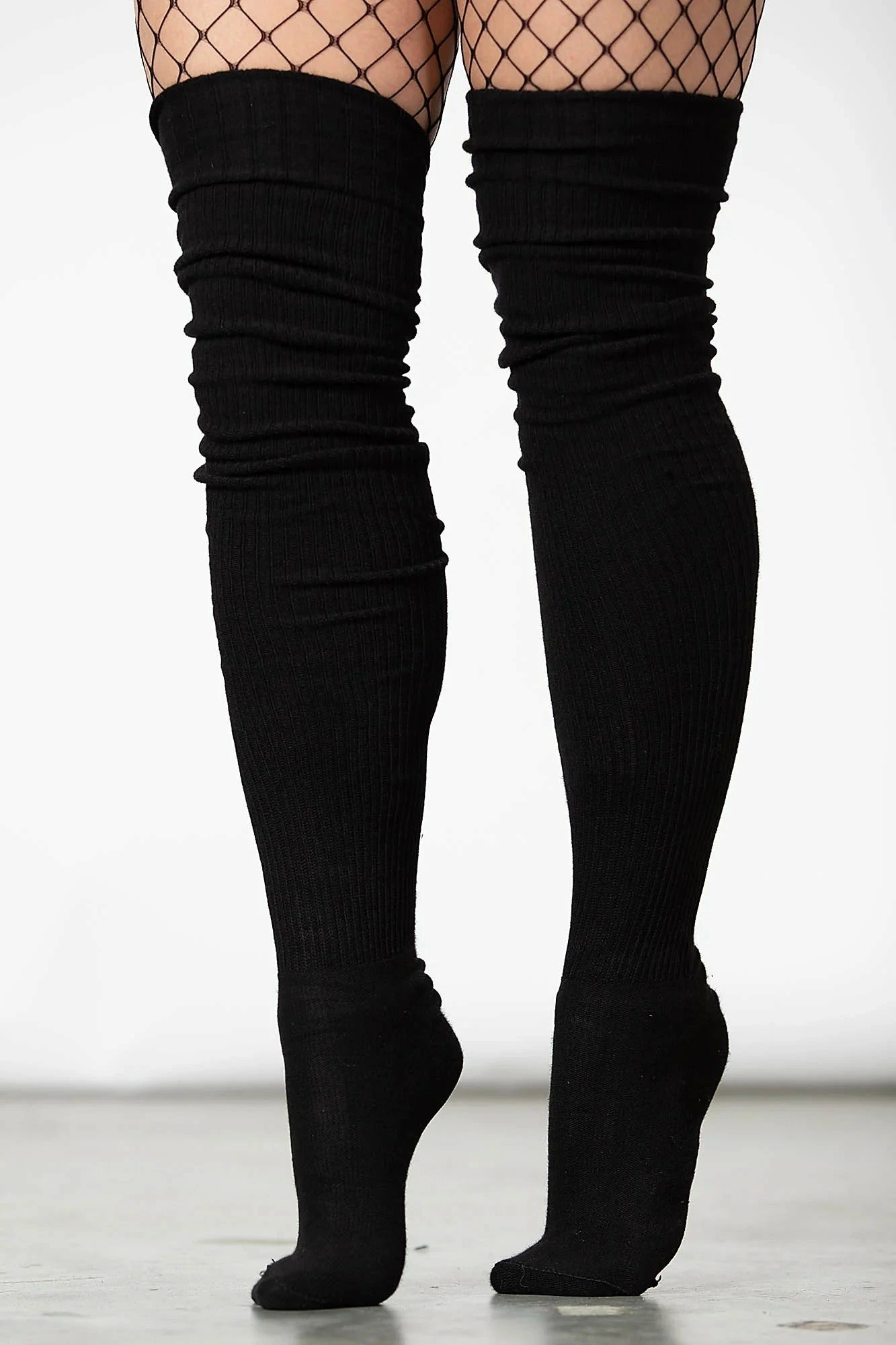 When all else fails, get new socks! Classic and exxxtra long socks – ‘Hecate’ featuring ribbed texture and over-the-knee look. They can be worn extra-slouchy or pulled up as thigh-highs!Â