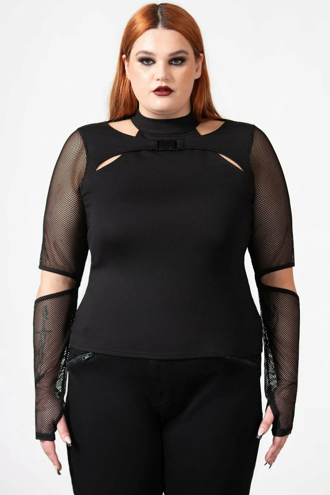 – Statement fishnet sleeves.