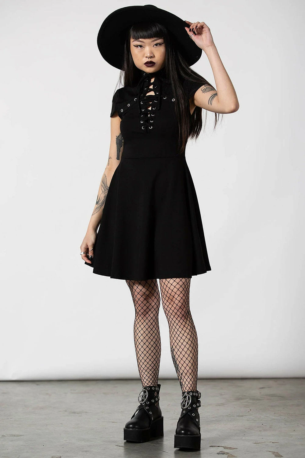 Cinch yourself into our ‘Tied up’ Skater dress; Crafted in soft, stretch fabric to give the perfect figure hugging fit this dress is simple but still laced with attitude. Perfect to take you from stomping the streets to a ballroom blitz.