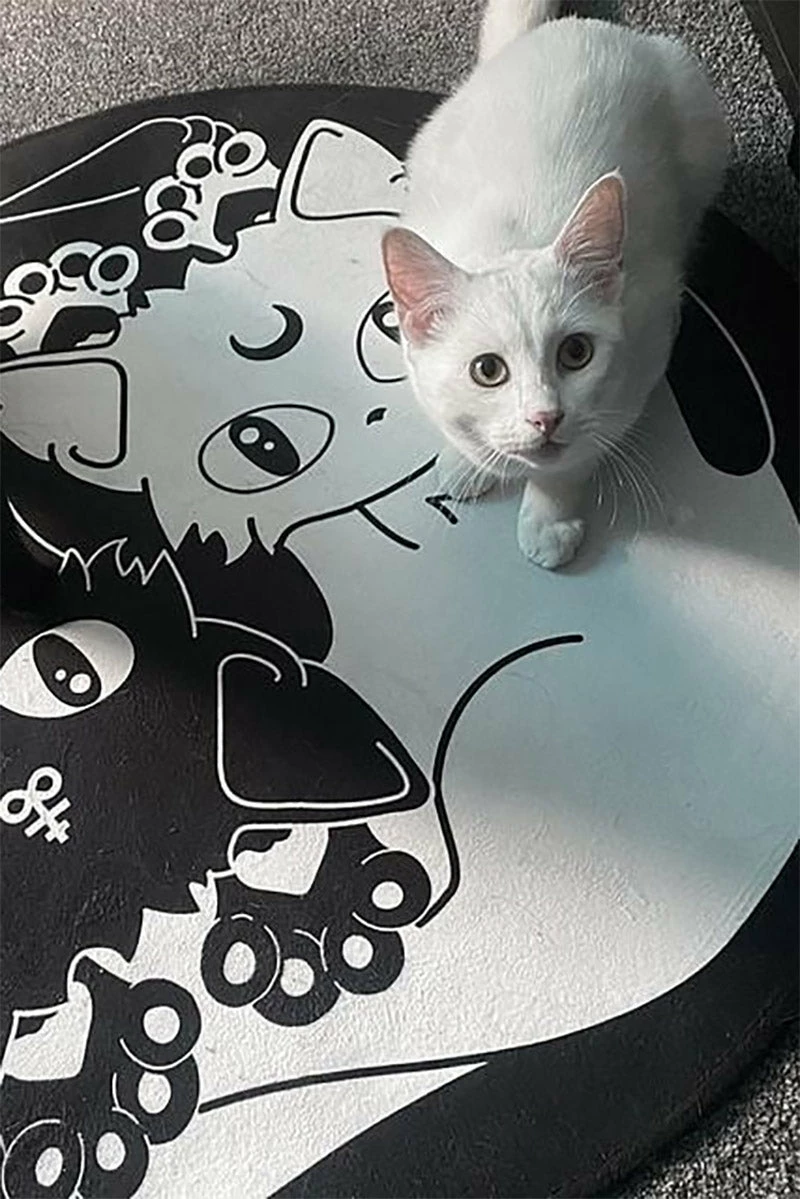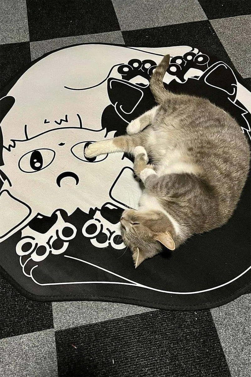 Looking to complete yer crypt with some killer details? The ‘Yin Yang’ area rug is complete with a soft short-pile fur surface, custom shape with bold statement graphic, bound edges and anti-slip treatment to the reverse. Perfect for adding a fun detail to your home, meditation corner or wherever! Purrfect! ^^