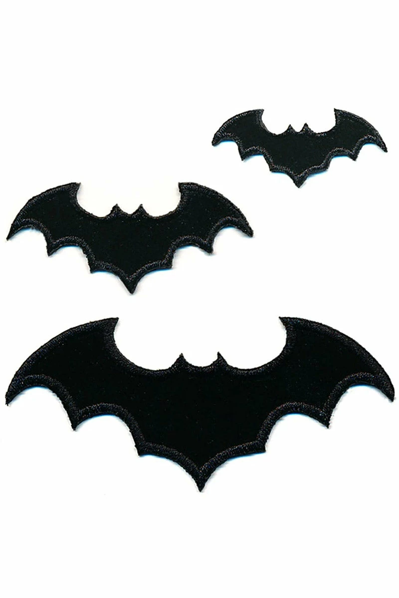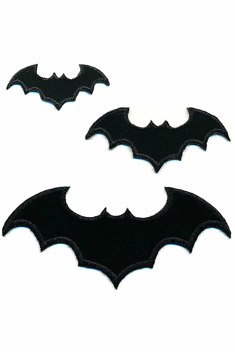 Lead your coven into the dead of night wearing these bewitching bat patches! Painstakingly embroidered, this gothic patch set features 3 black bats of various sizes with wings outstretched in flight. Finished with iron-on backing so you can easily attach them to your vest, jacket, or anything else your dark heart desires.Â