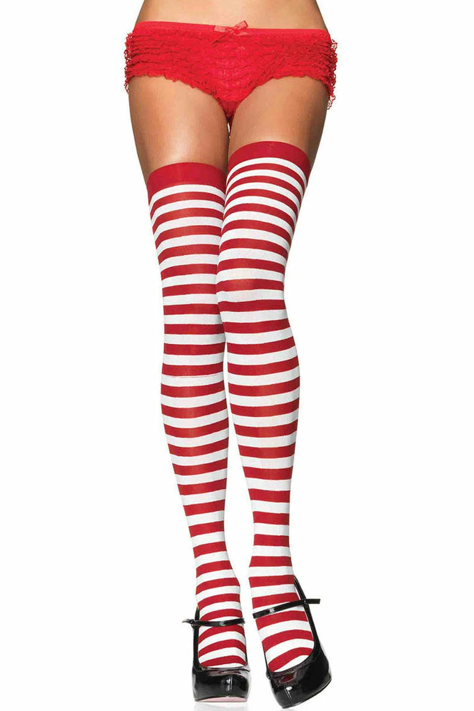 Be the Queen of Halloween in these sexy striped stockings. Slip these goth tights under a mini skirt or pair of shorts to add a spoonful of spook to your look. Featuring statement stripes of various colors to tease and please!