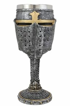 Make a toast to your brothers in battle with this epic goblet! Crafted to look like real armor, this medieval chalice features the helmet of a knight—complete with a stem and rest made to look like chainmail! Finished with a stainless steel insert for easy removal and washing. Perfect for holding your wine, mead, and tears of your enemies… this goblet is the stuff of legends!
