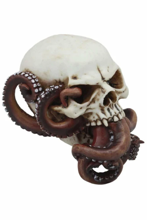 Invoke creatures of the deep with this seasick statue! Designed to look like a realistic skull, this hella haunting statue features a dead man’s skull pierced with textured octopus tentacles! Hand-cast in fine resin to please your heathen soul. Rest this figurine on a shelf, desk, or table to conjure sea monsters in your room!