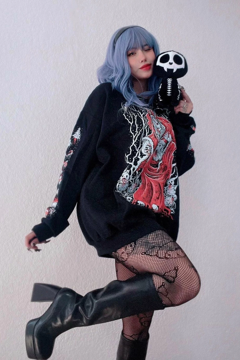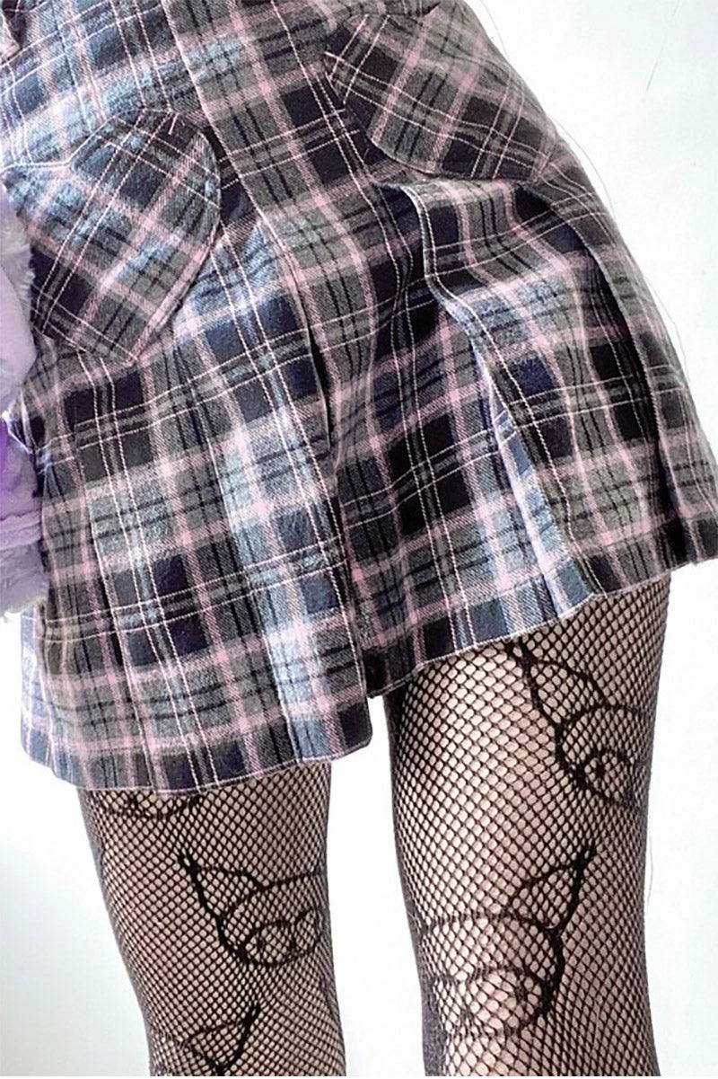 You’re too cute to spook in these Kuromi stockings! Soft and stretchy, My Melody’s worst frenemy is embroidered all over the fine black fishnet. Pair these to-die-for kawaii tights with your fav school girl skirt and mary janes to summon scares to your Sanrio style. Perfect for girls with Harajuku hearts who love bad bunnies!