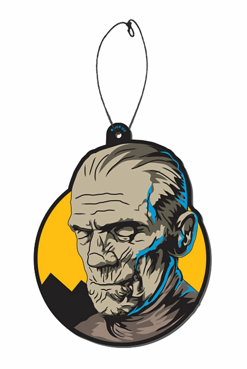 Drown out the mummified corpse smell in your hearse with this monster movie air freshener! Summon scares with the deadly design, featuring the shadowed figure of the Mummy haunting his pyramid domain of the dead. Terrify your passengers with the delicious Cinnamon scent, finished with a hanging loop for easy mounting in your creepy car.
