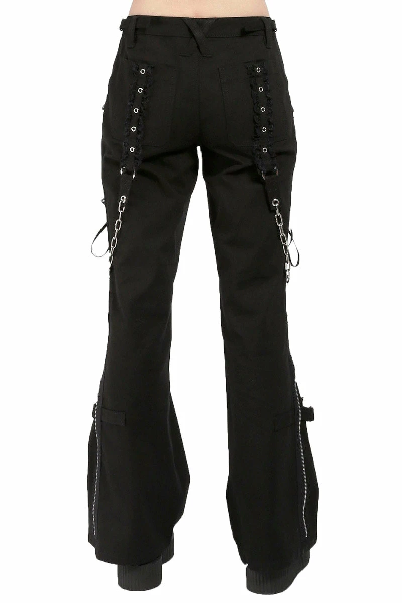 Catch glances and break hearts in these flared AF Tripp pants, designed to summon sweet spooks to your style. Corset details with black ribbon lacing possess the sides of these gothic lolita pants—ruffle accents and leg zippers haunt the flared fit. Finished with bondage straps, as baddie and beautiful as you.Â